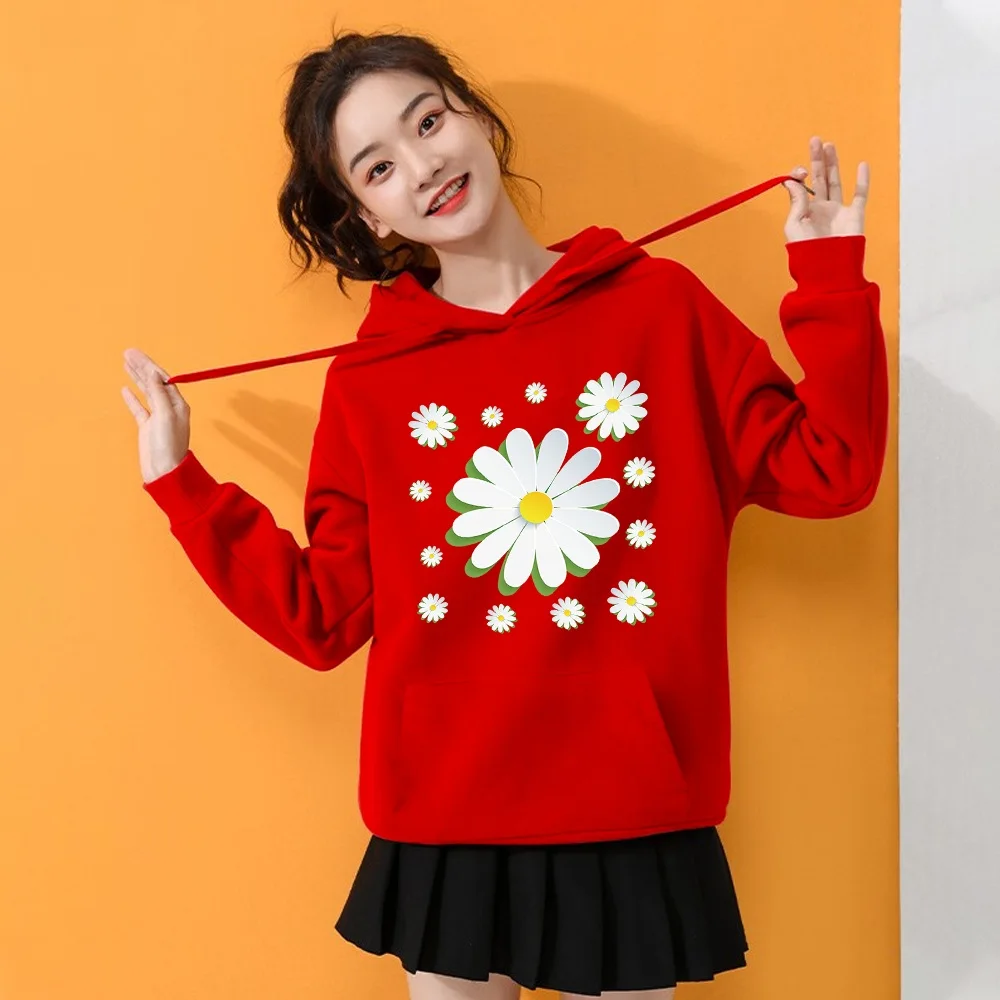 Повседневные женские толстовки с принтом маргариток пуловеры с капю...