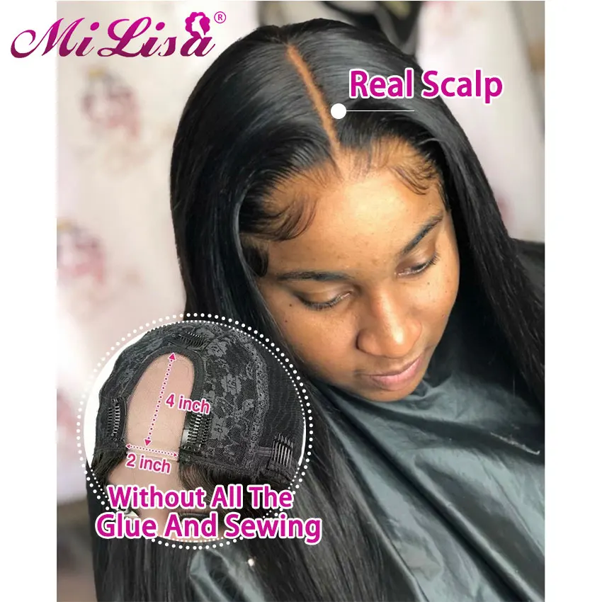 Прямые u-образные парики, человеческие волосы, перуанские волосы Remy, без клея, полностью машинный парик, Mi Lisa 2x4, u-образный парик для черных женщин