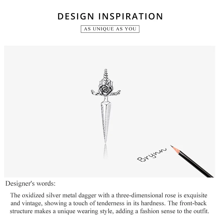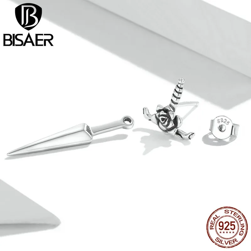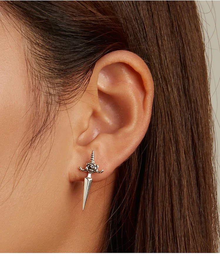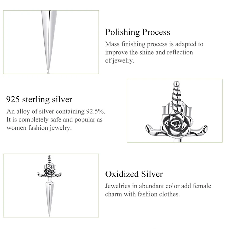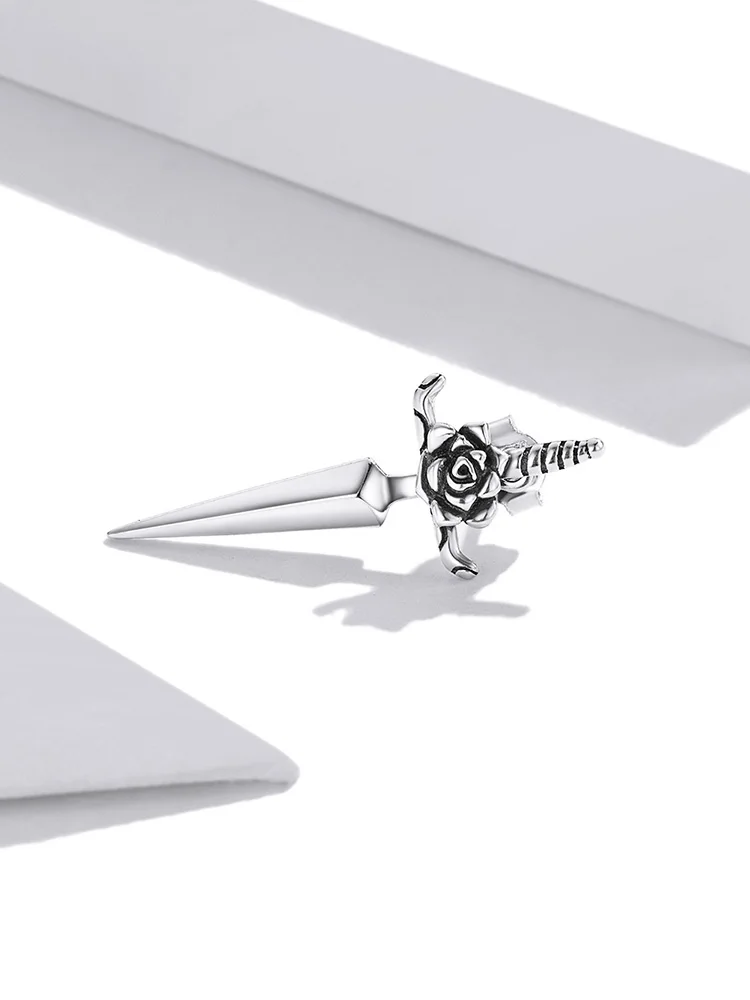 Номер Сертификата925 Sterling Silver Stud Earrings Vintage Dimensional Rose Dagger