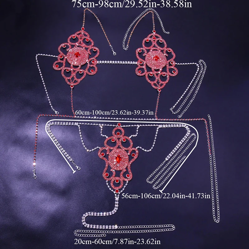Женский комплект нижнего белья Stonefans, красный комплект нижнего белья из двух предметов, экзотический Дамский бюстгальтер, стринги с цепочкой на талии, комплект нижнего белья, вечерние украшения