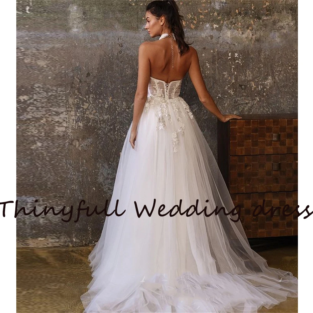 Женское свадебное платье со шлейфом MYYBLE, кружевное платье невест...