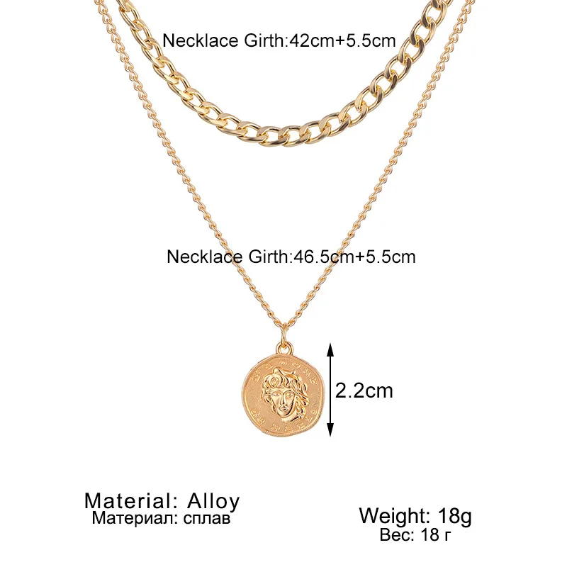 Крупное ожерелье из толстой цепи в стиле ретро-портрет, Двухслойное...
