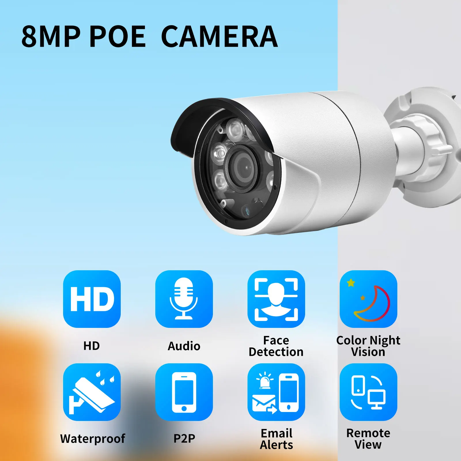 8 МП 5 Мп POE IP цилиндрическая камера наружная Водонепроницаемая д...