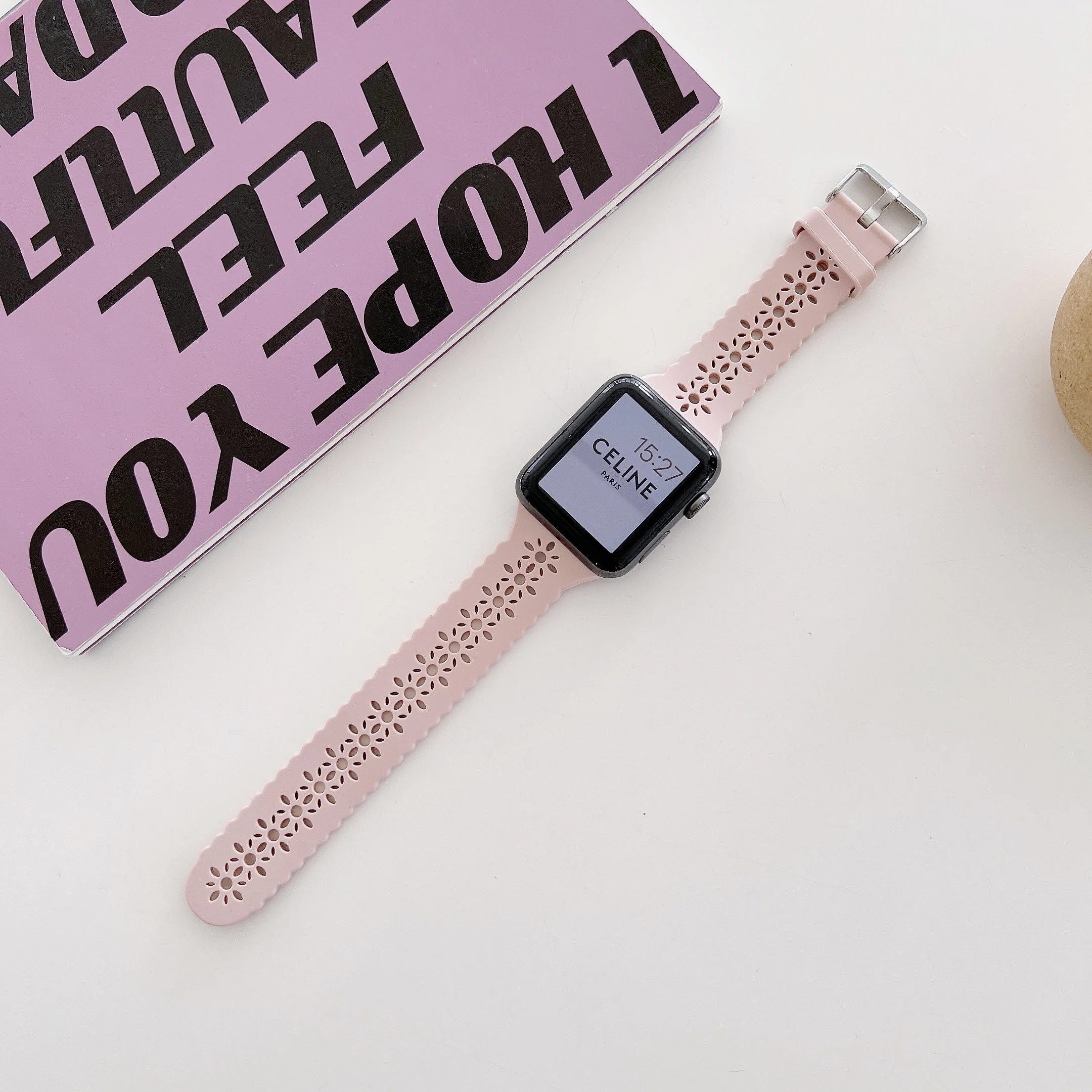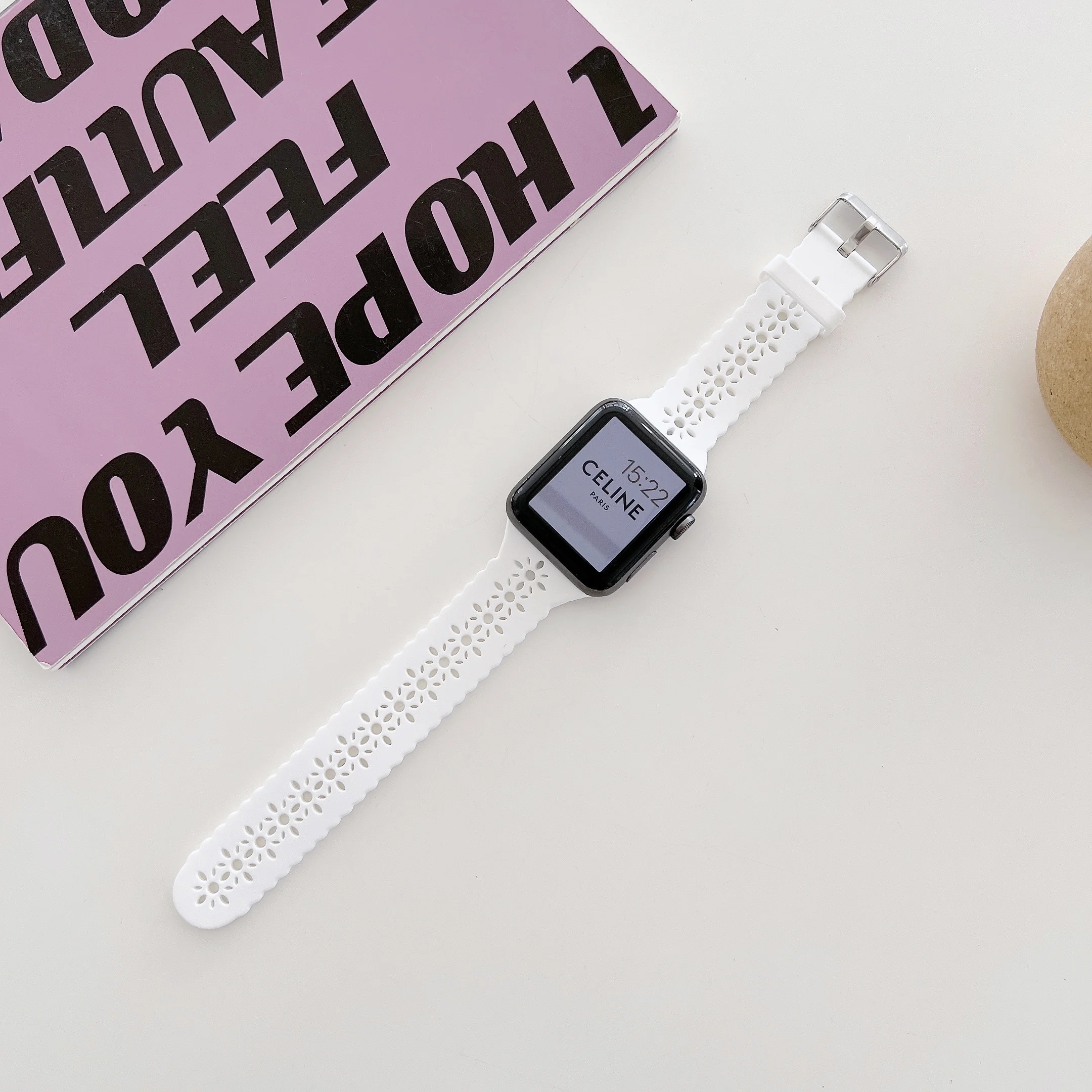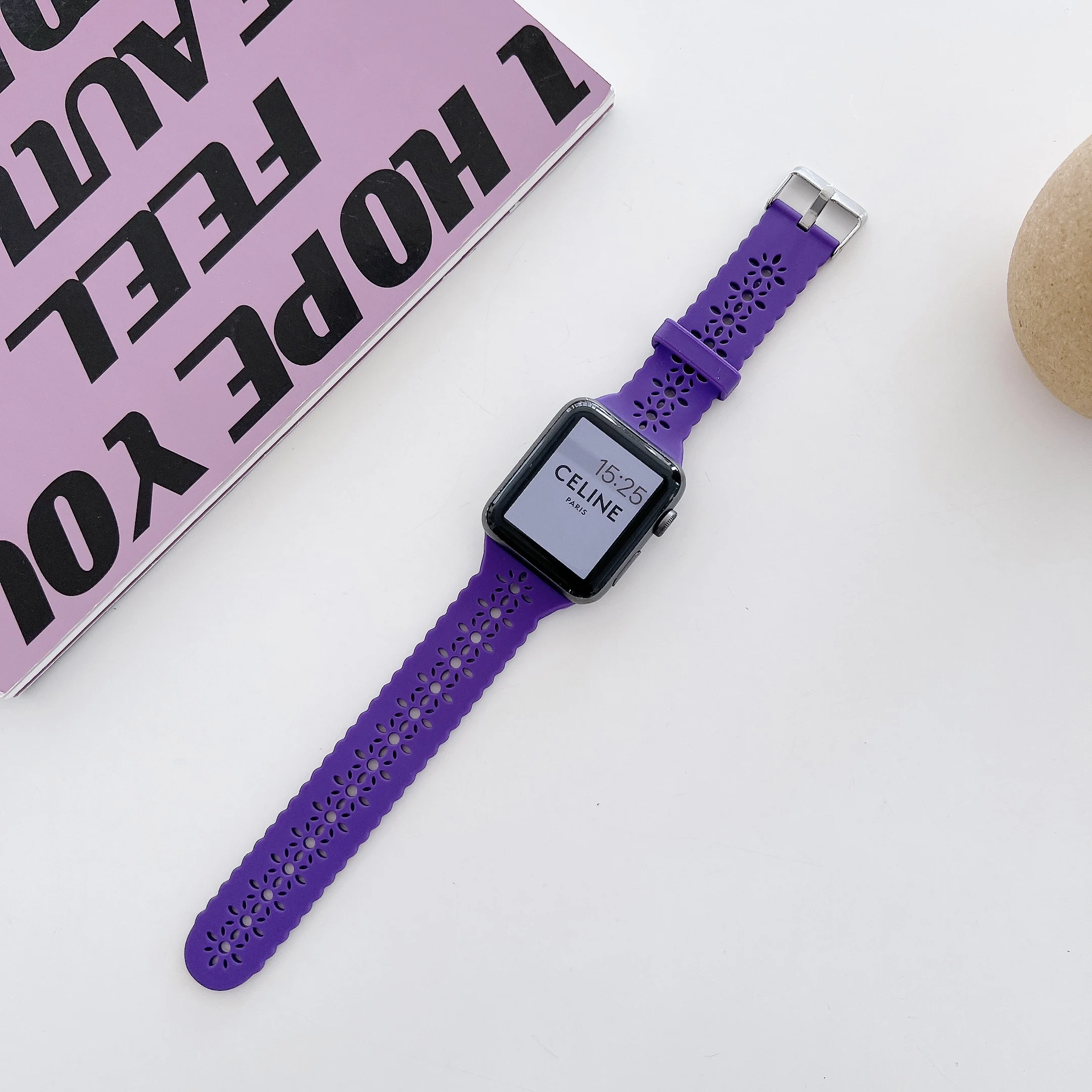 Ремешок силиконовый спортивный для Apple Watch Band, Воздухопроницаемый браслет для IWatch Series 7 6 SE 5 4 3, 45 мм 44 мм 42 мм 41 мм 40 38 мм