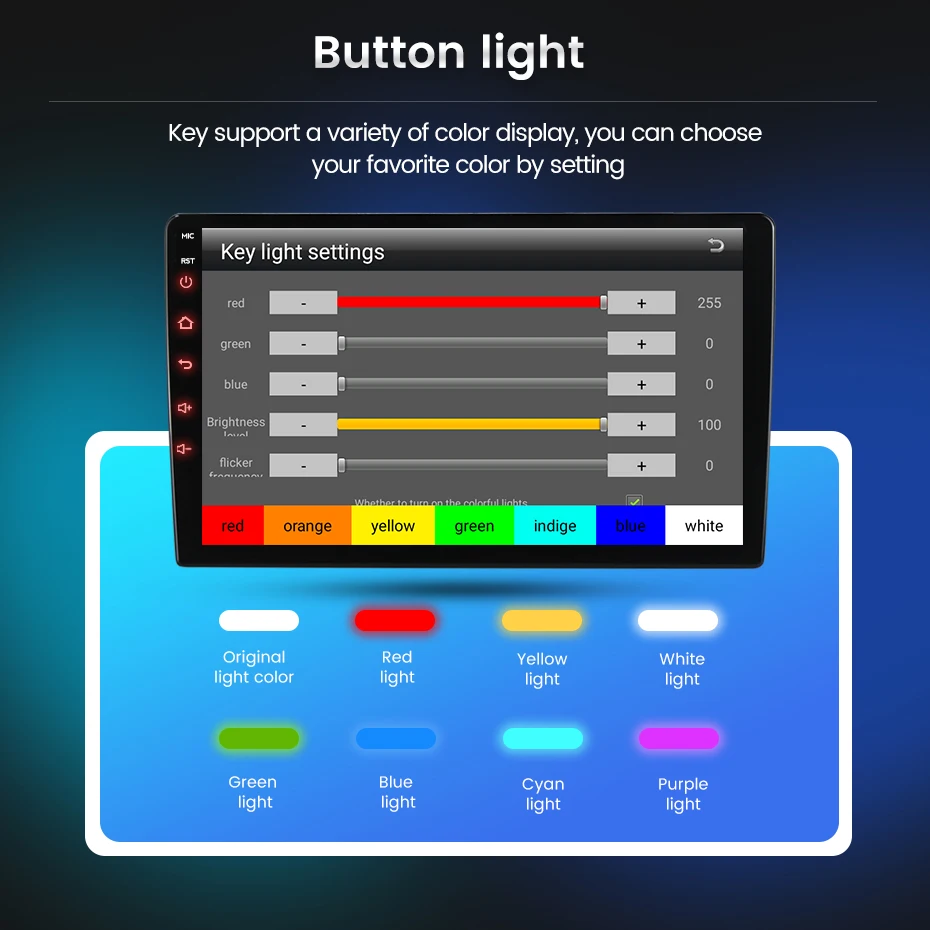 Поддержка 2 usb-порта, воспроизведение видео в формате HD 1080P, зеркальная связь, сплит-экран, управление рулевым колесом, Поддержка google play, поддержка цветной кнопочный светильник