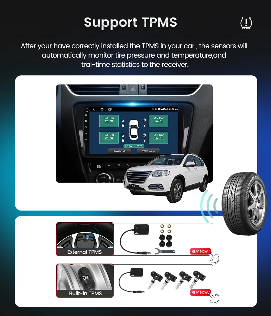 Поддержка задней камеры, DVR, OBD, давления в шинах, Carplay, DAB + (опционально)