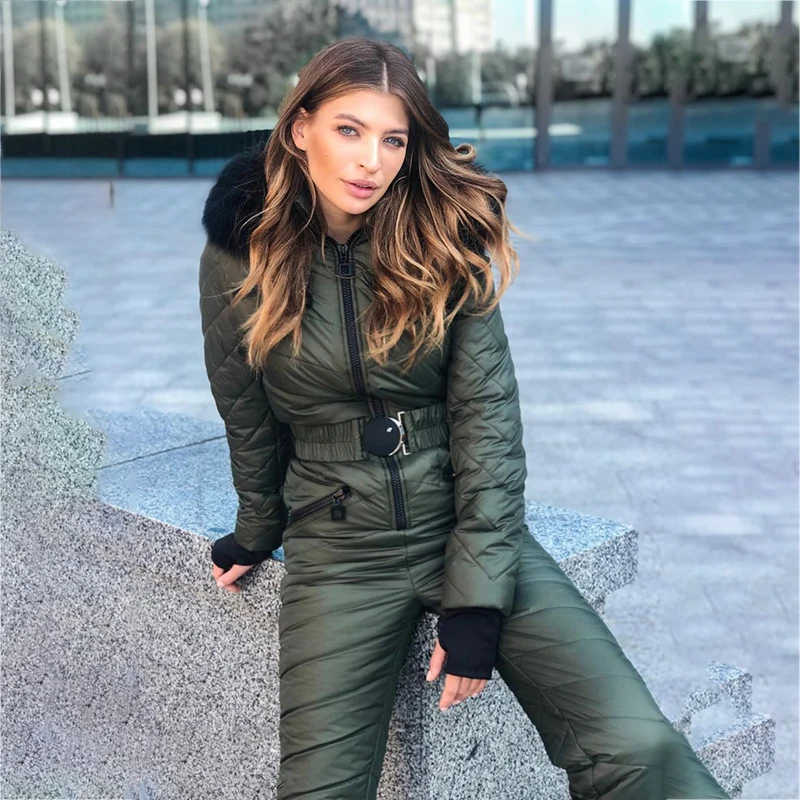 Женский цельный лыжный комбинезон, Модный повседневный плотный тепл...