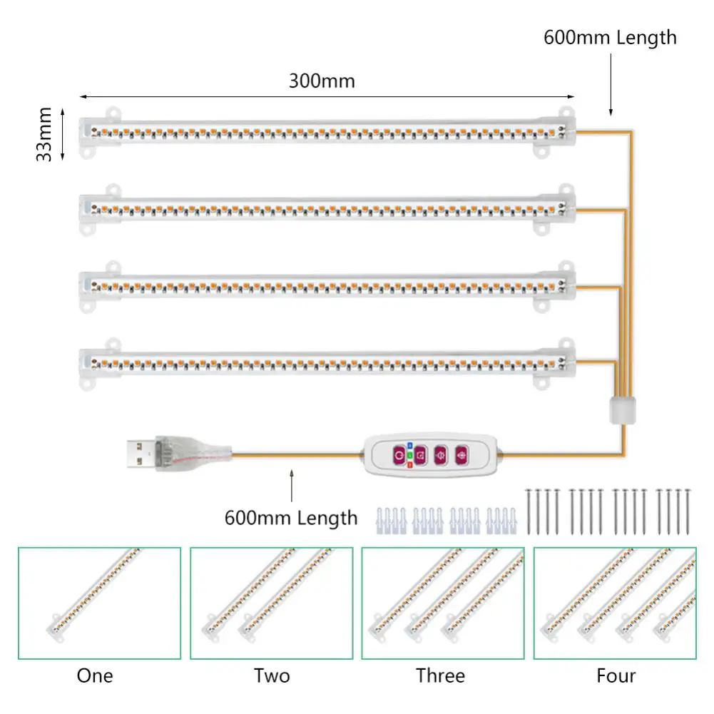 5. Светильник для выращивания поставляется с винтами и двусторонней лентой для легкой установки. Компактный дизайн подходит для различных приспособлений и поверхностей.