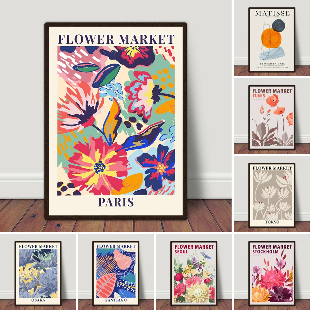 Цветочный рынок Париж красочный ботанический художественный принт Весна для спальни домашний декор