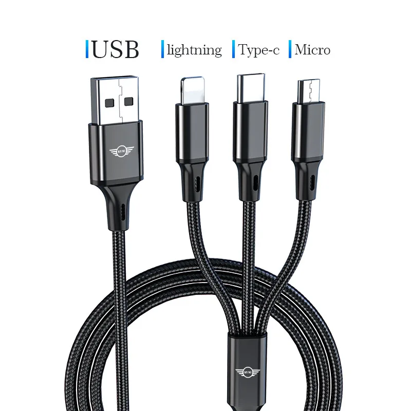 Автомобильный Стайлинг 1,17 м кабель для передачи данных 3 в 1 кабель для быстрой зарядки MINI Cooper One JCW Clubman Countryman R55 R56 F56 R57 R58 R59 R60 R50 R53 R52 Cabrio работает