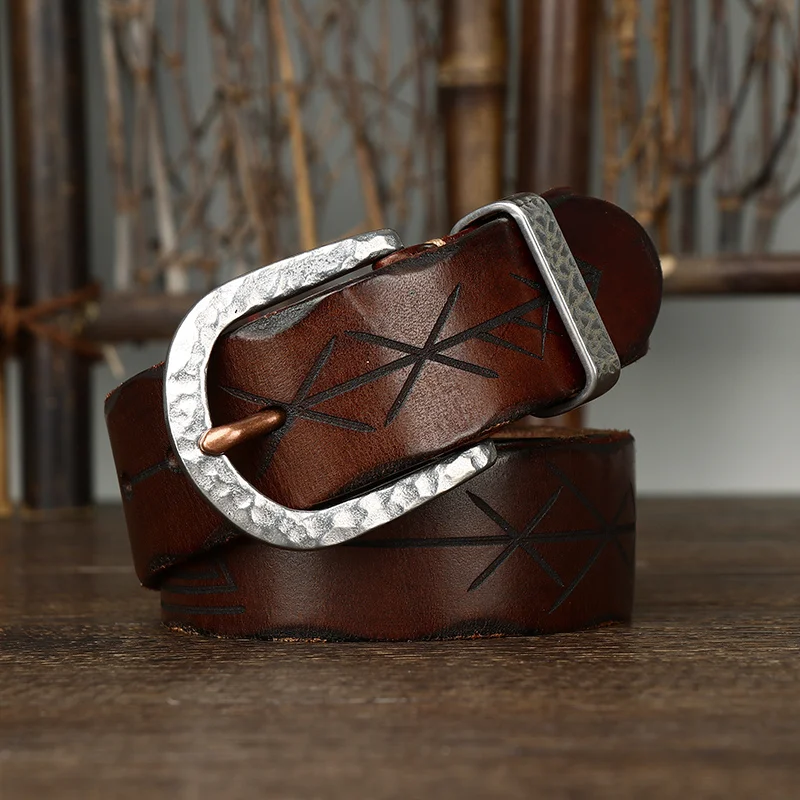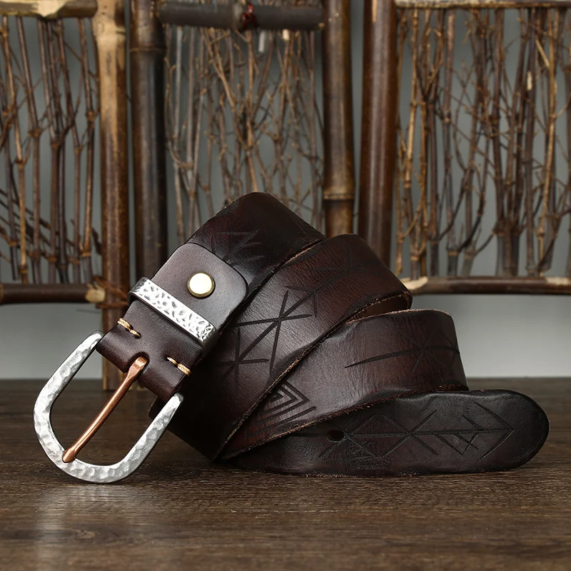 Ремень мужской из натуральной кожи с лазерной гравировкой и пряжкой