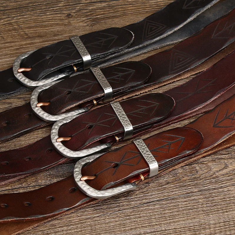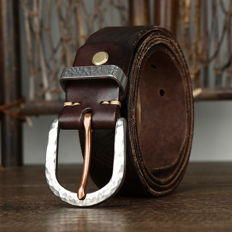 Ремень мужской из натуральной кожи с пряжкой в стиле ретро