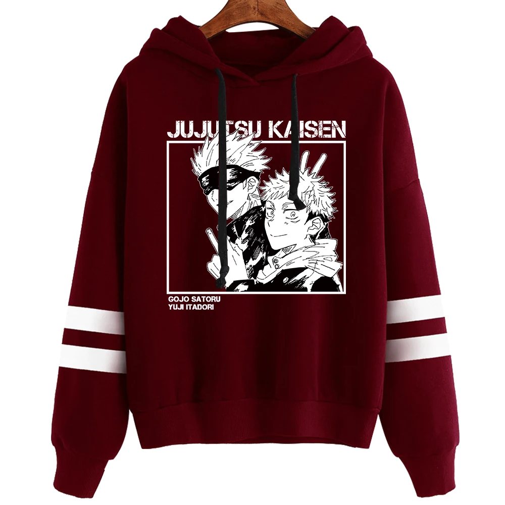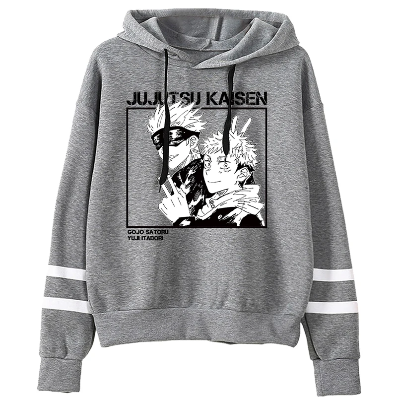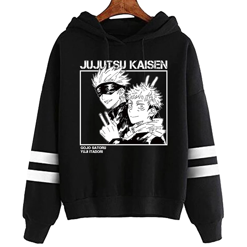 Толстовка с капюшоном в стиле Харадзюку, худи с длинными рукавами и графическим принтом, пуловер с капюшоном в полоску, с аниме Сатору годзё итадору, юйцзи