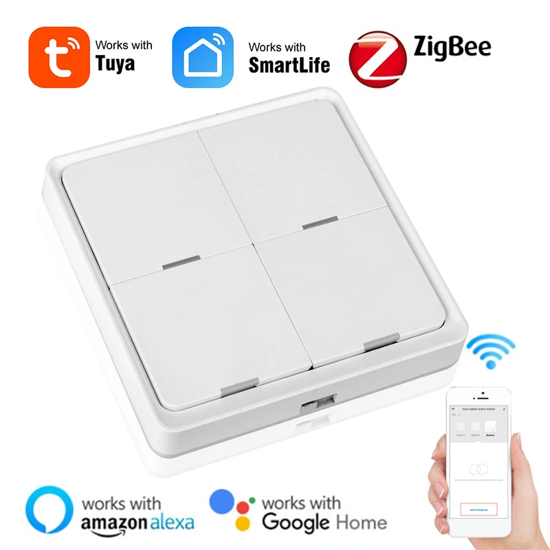 Беспроводной смарт-переключатель Tuya ZigBee, 4-х клавишный кнопочный контроллер с питанием от батареи, 12 сцен автоматизации, для устройств Tuya