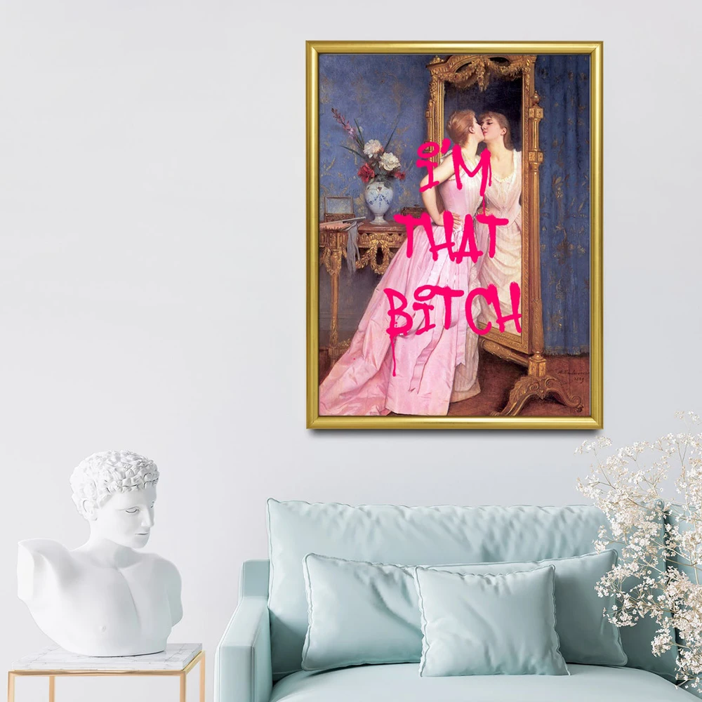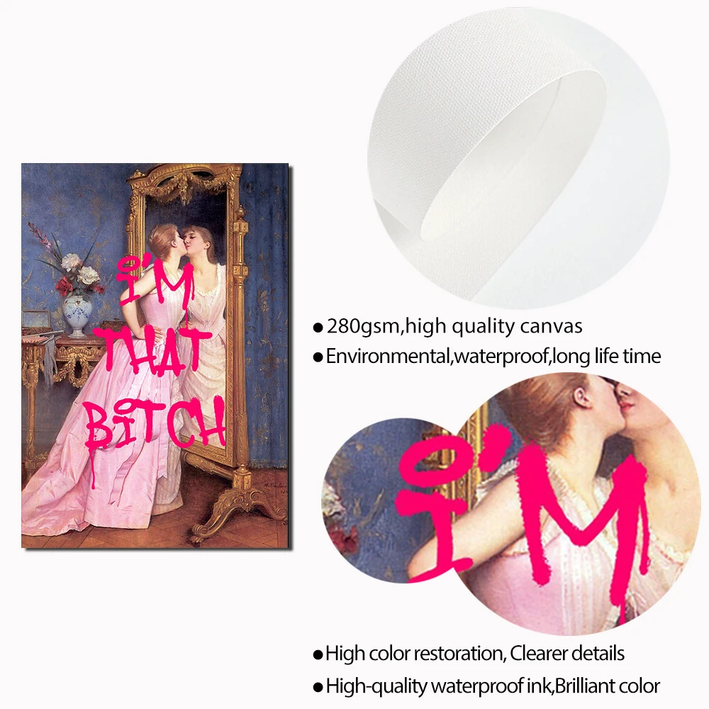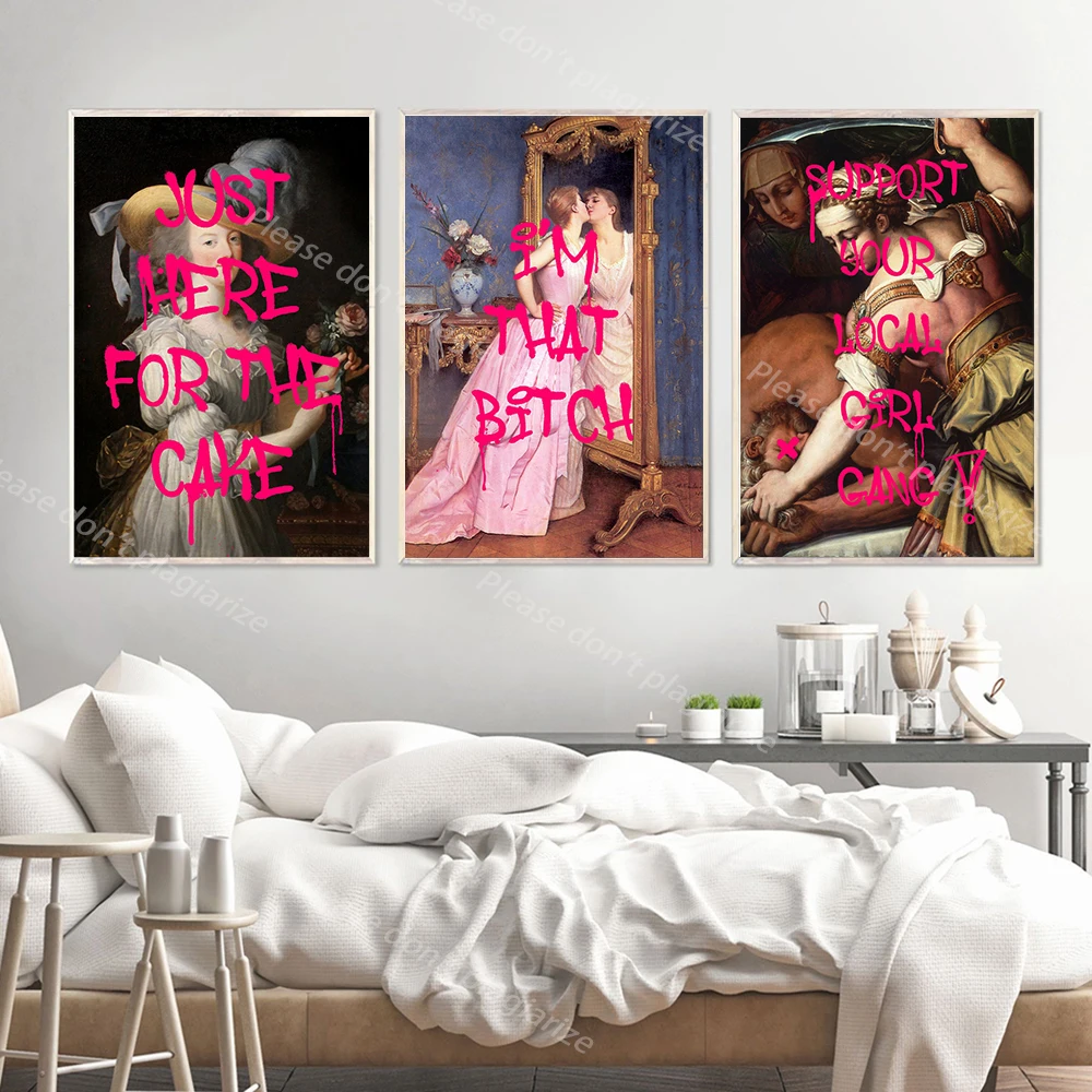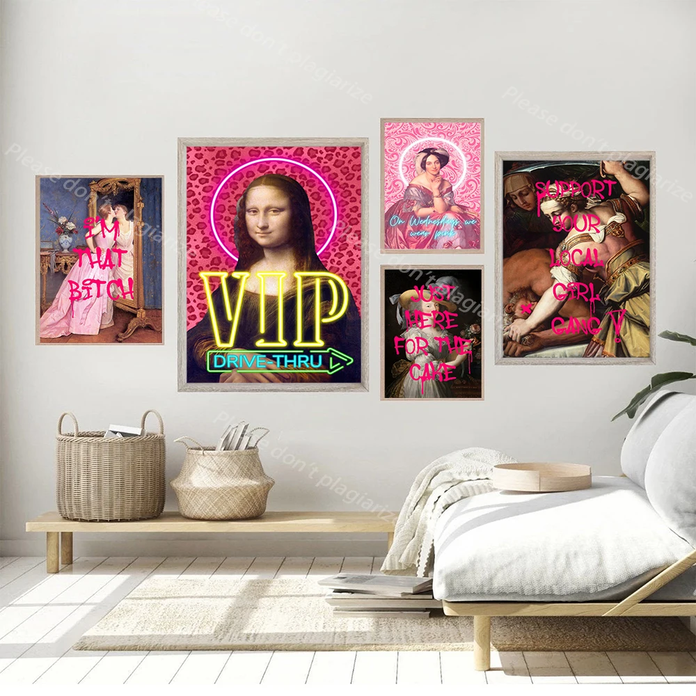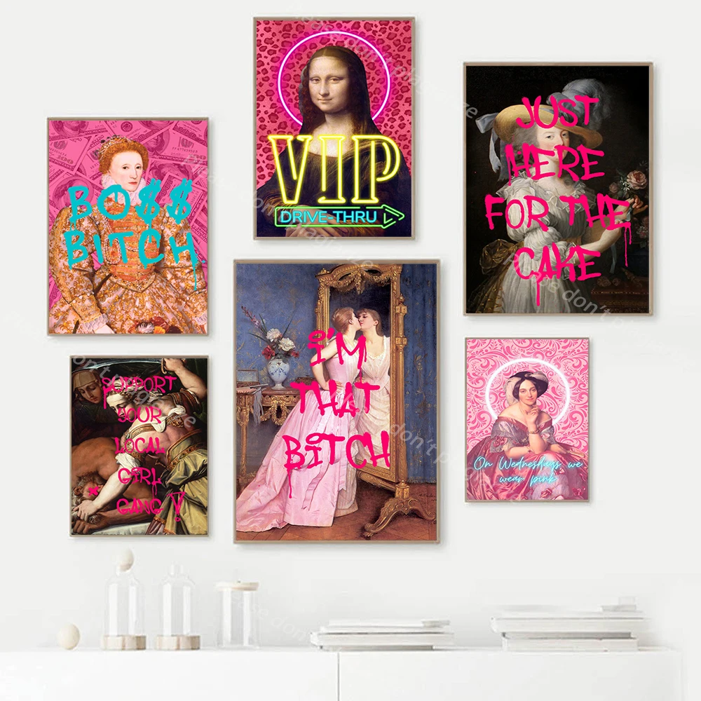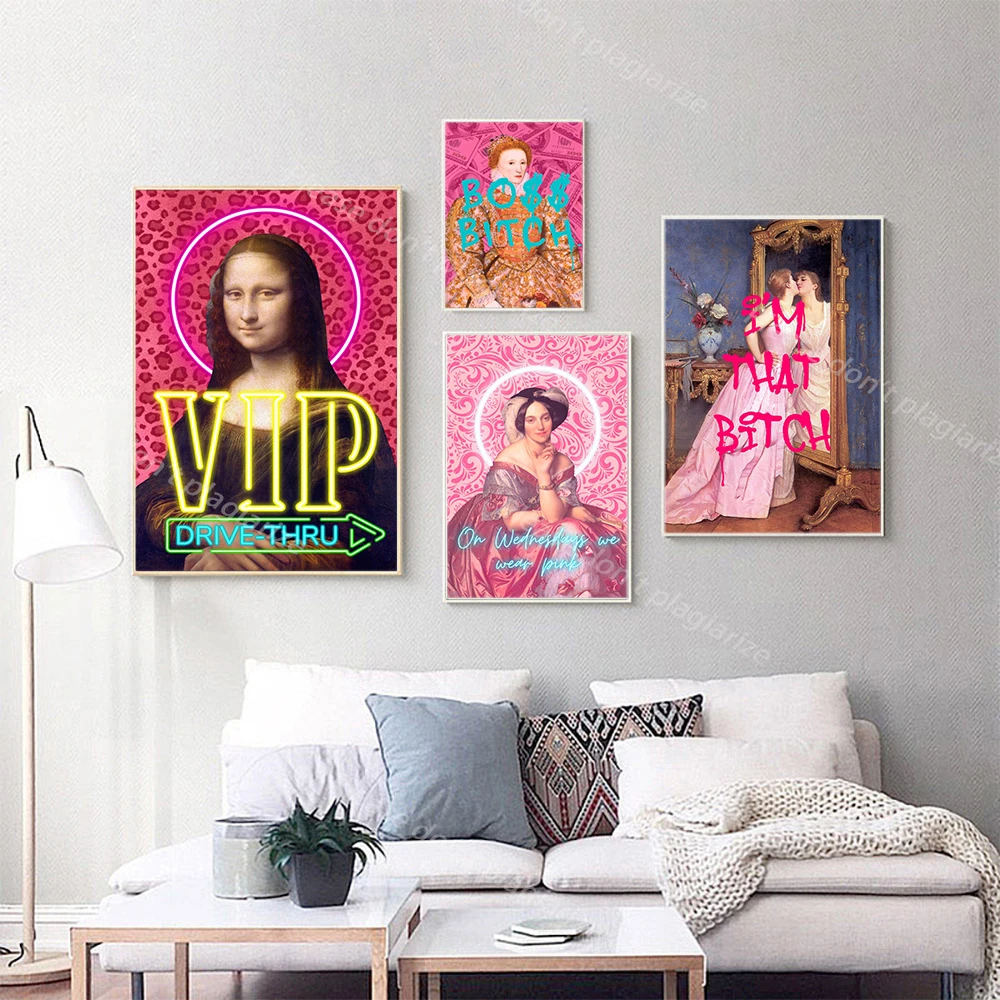 Эстетическое смешное искусство, феминистская Картина на холсте, розовая Мона Лиза, Вдохновляющие смешные цитаты, декор для спальни и дома