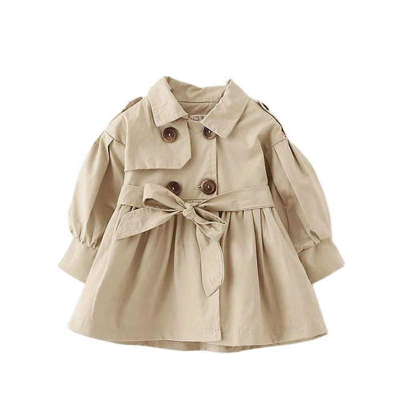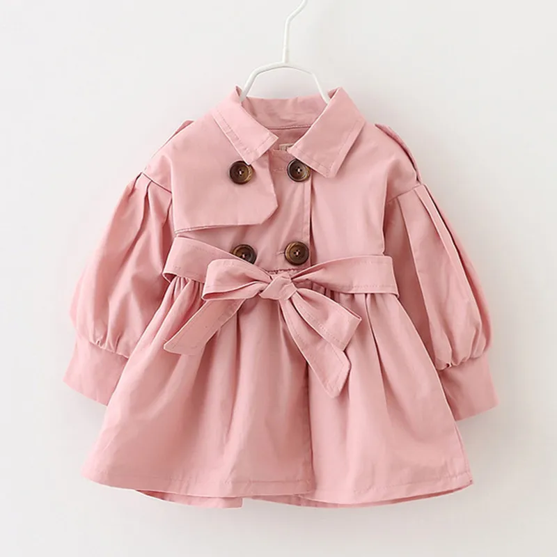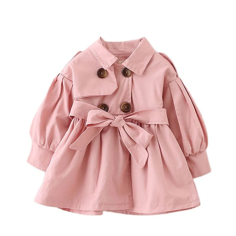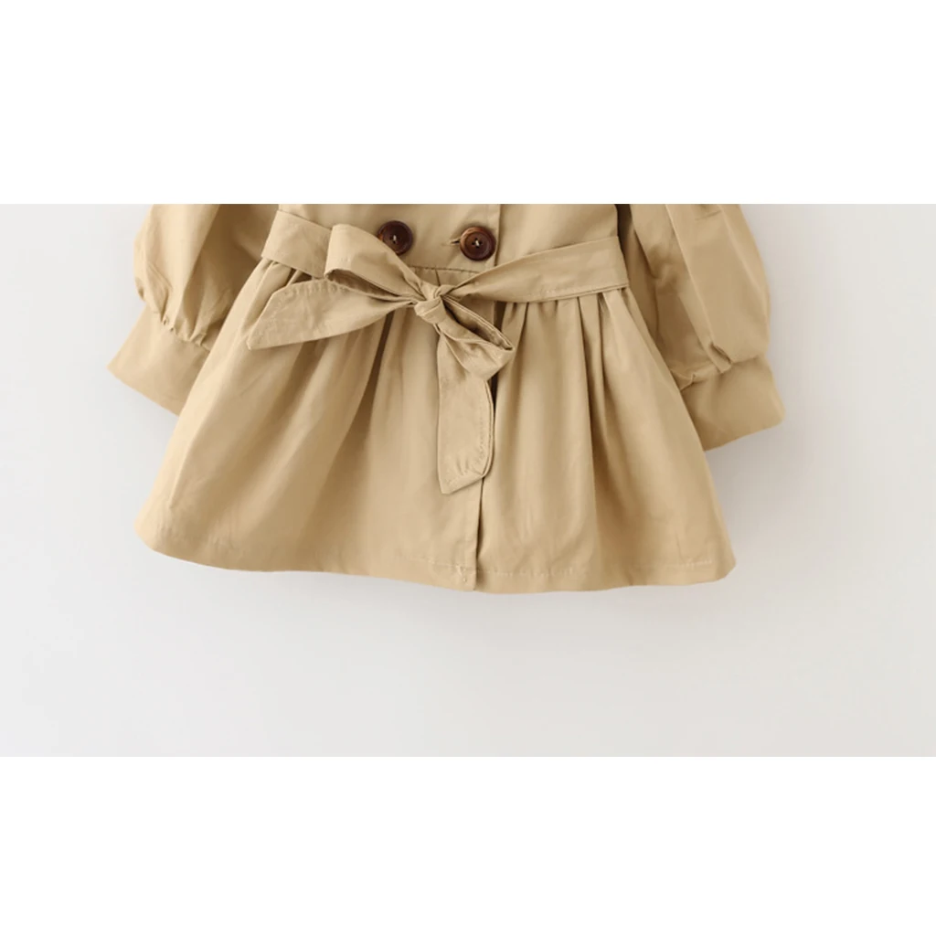 Ветровка демисезонная на пуговицах для девочек, с поясом на талии