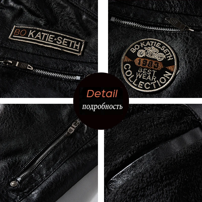 Мужская куртка из ПУ кожи, с флисовой подкладкой и воротником-стойкой