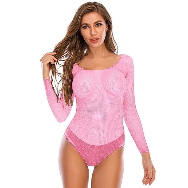 2021 женское бикини сексуальное Сетчатое боди стразы с длинным рука...
