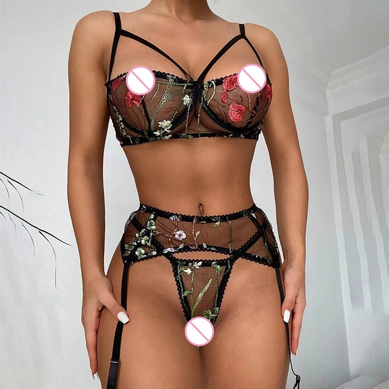 Сексуальное кружевное нижнее белье с открытой спиной и вышивкой, же...