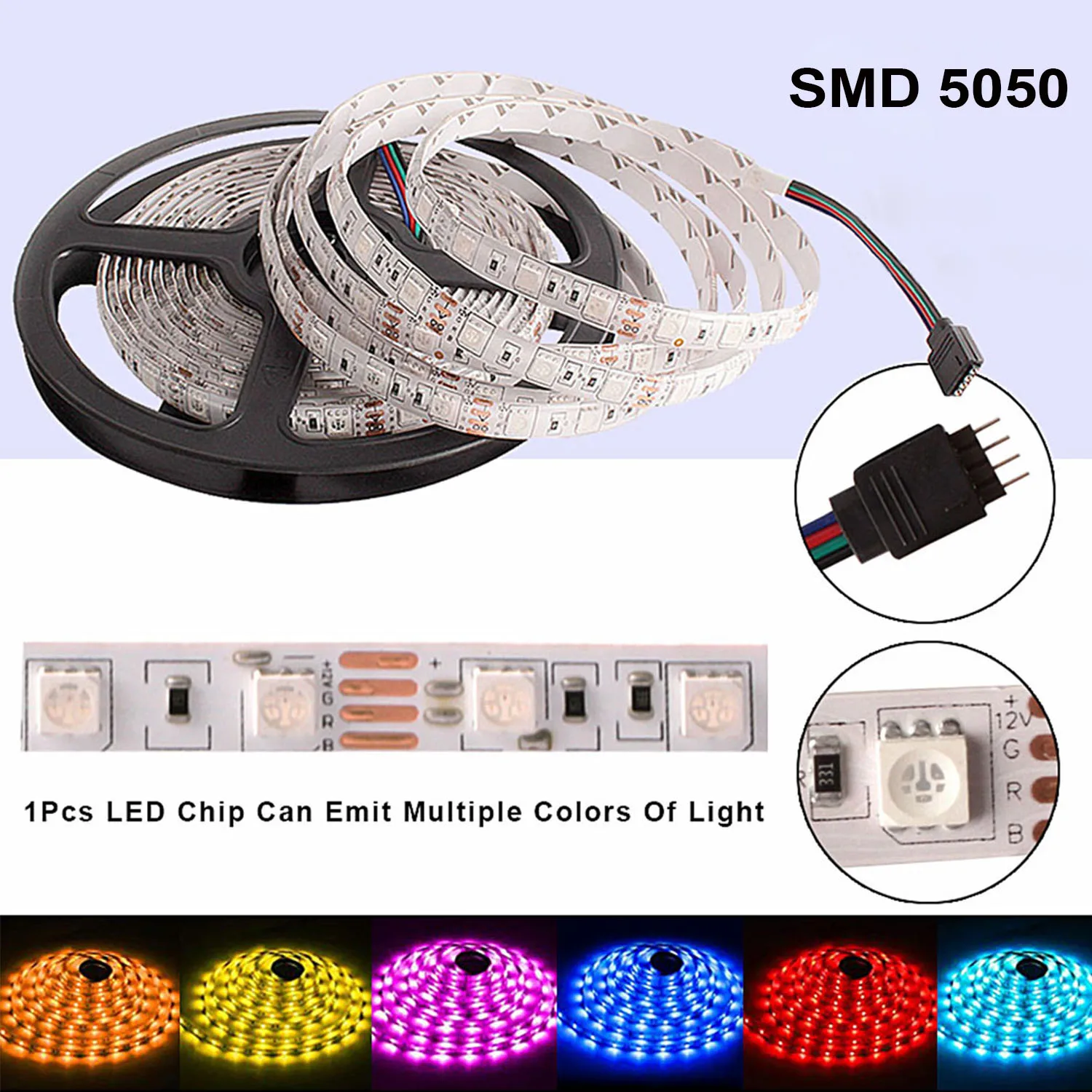 Светодиодный Тип: 5050SMDСтепень защиты: IP20 (не водонепроницаемый)Светильник угол: 120 °Рабочее Входное напряжение: 12 В постоянного токаРабочая температура: от-20 до 50 °Цвет излучения: RGB