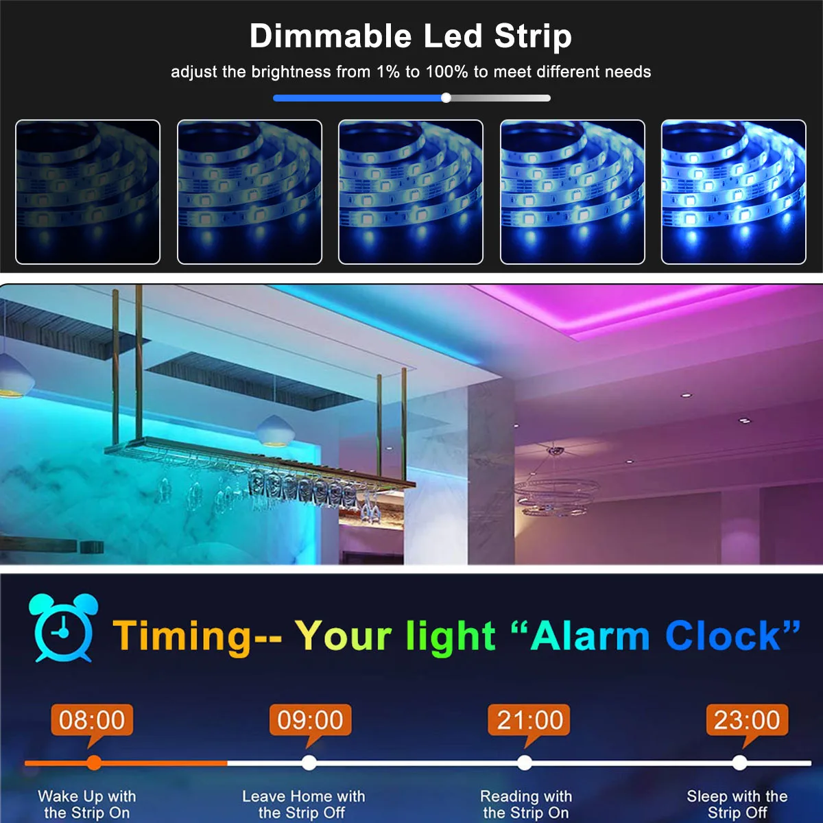 Гирлянда светодиодная с Bluetooth, 20 м, 5 м, с дистанционным управлением