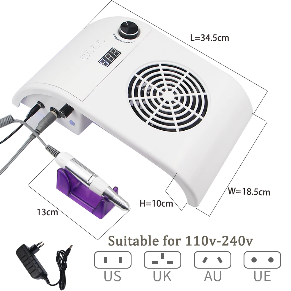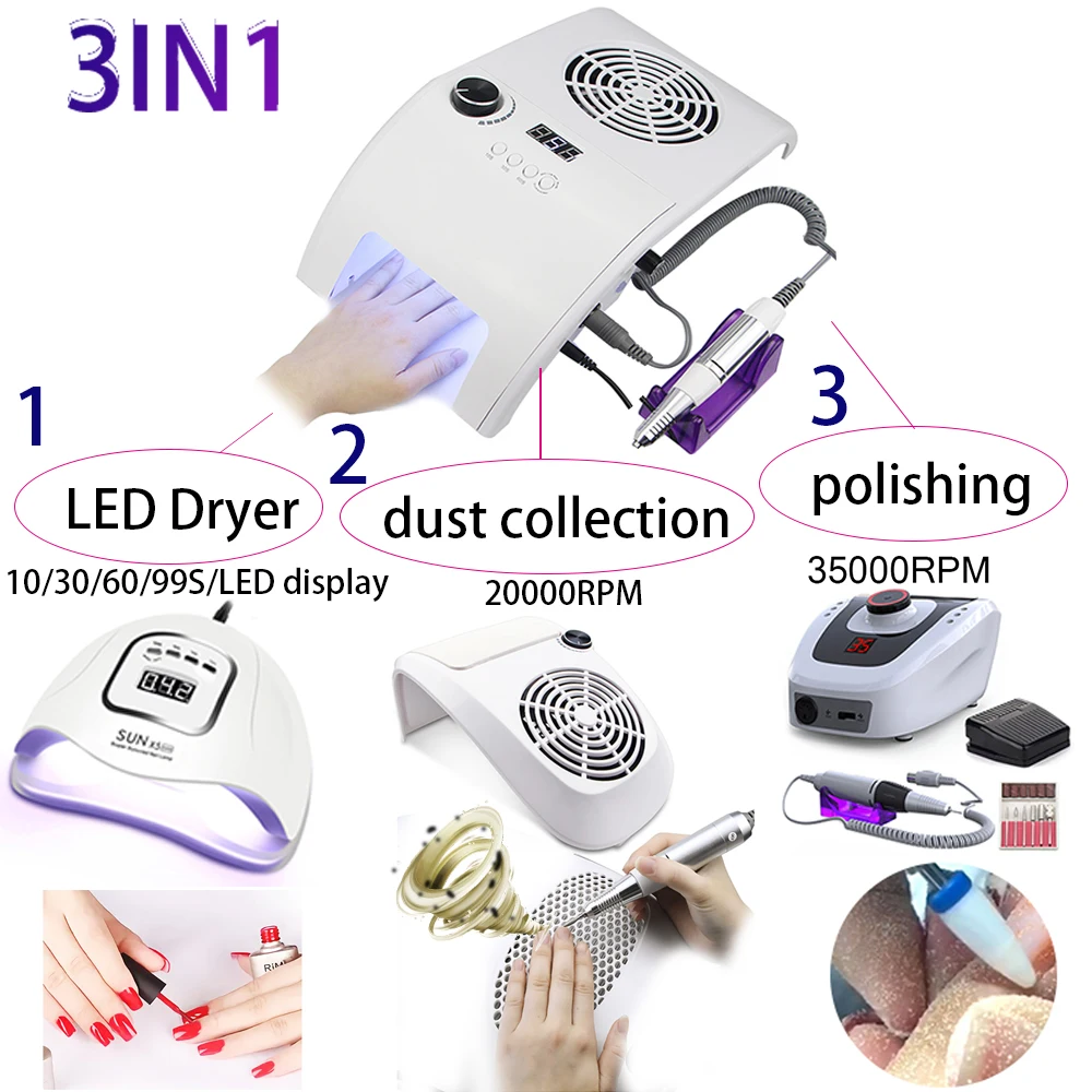 Многофункциональный 3в1 маникюрный набор для ногтей включает в себя лампу для ногтей Электрический коллектор для буровой пыли 20 шт. набор сверл для ногтей