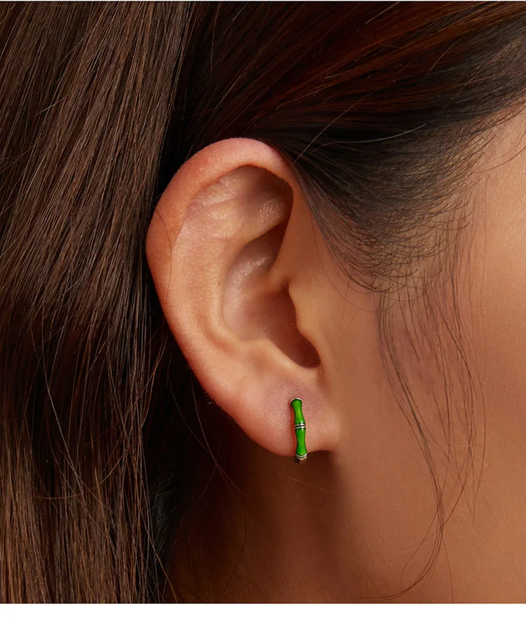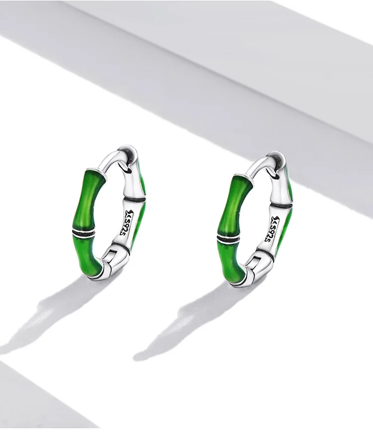 Bamoer Bamboo пряжки для ушей из настоящего серебра 925 пробы, зеле...