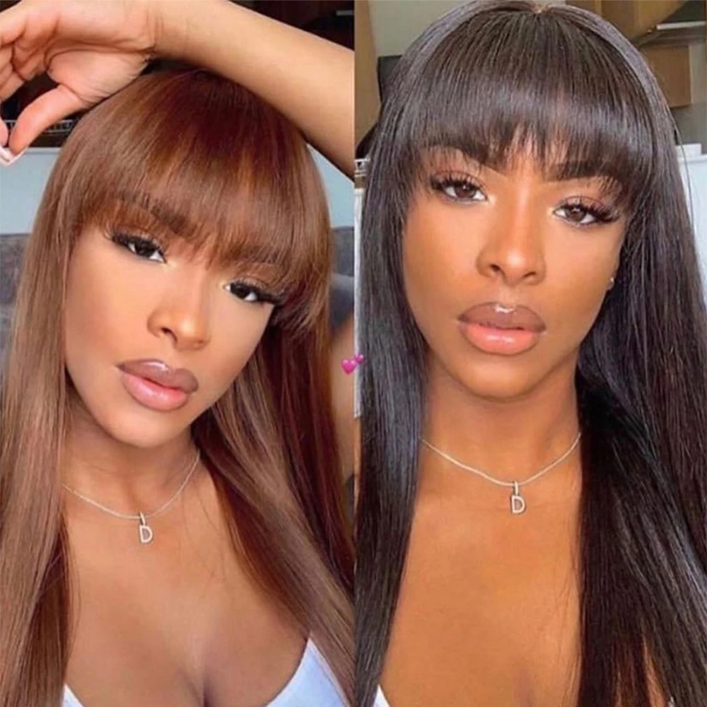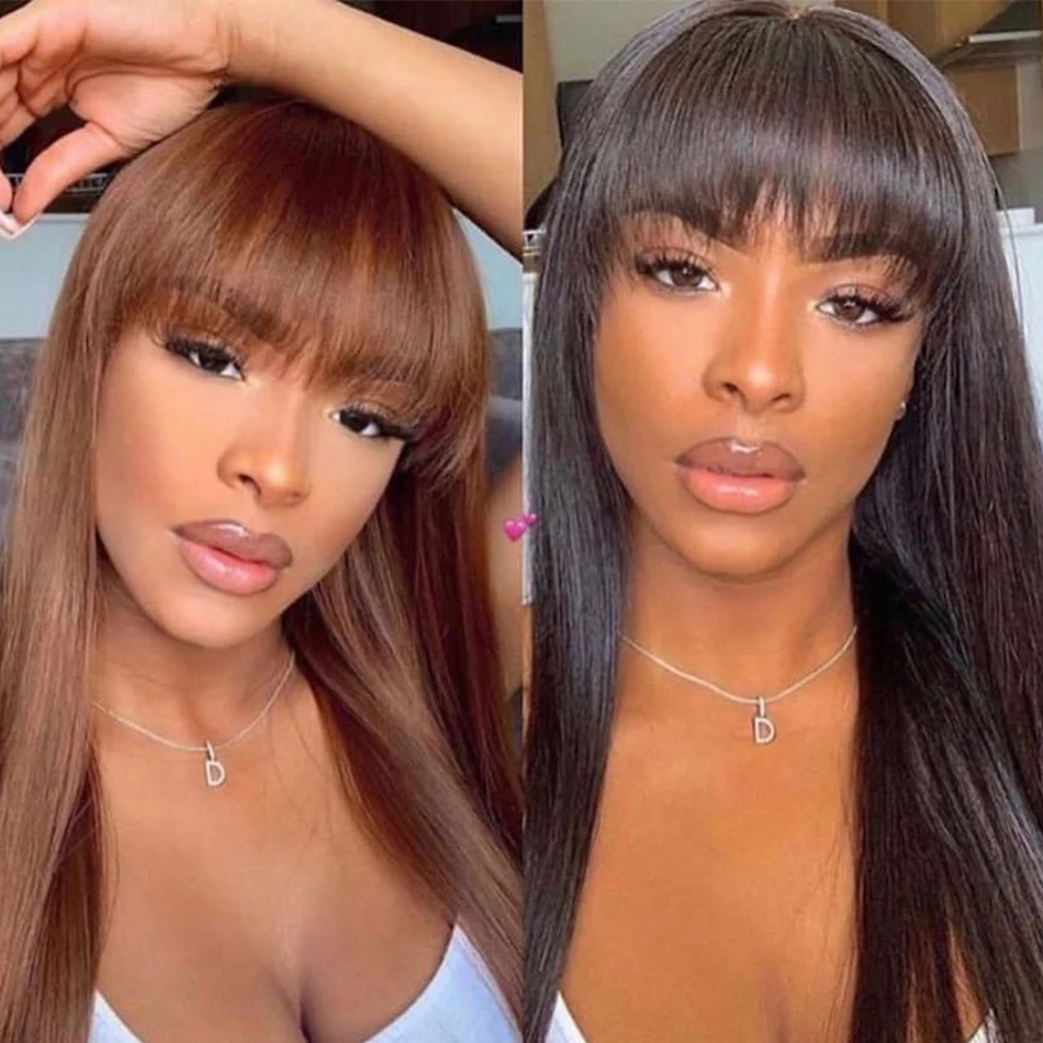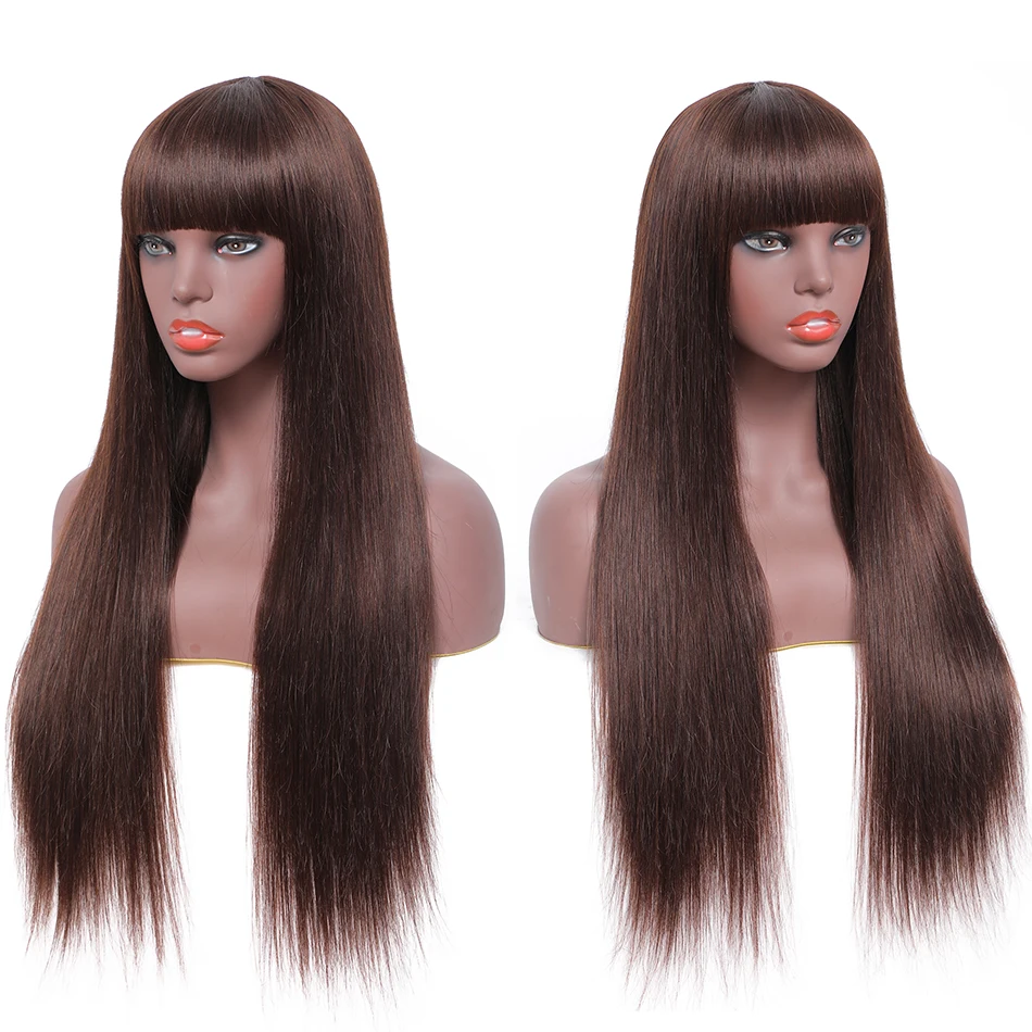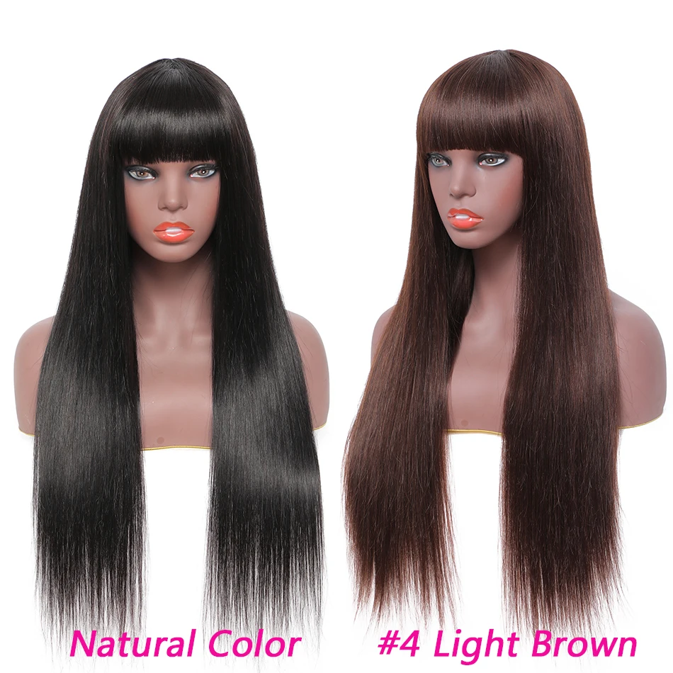 Прямые парики из человеческих волос с челкой, дешевые бразильские парики для волос, полный парик с бахромой, парики из человеческих волос для женщин