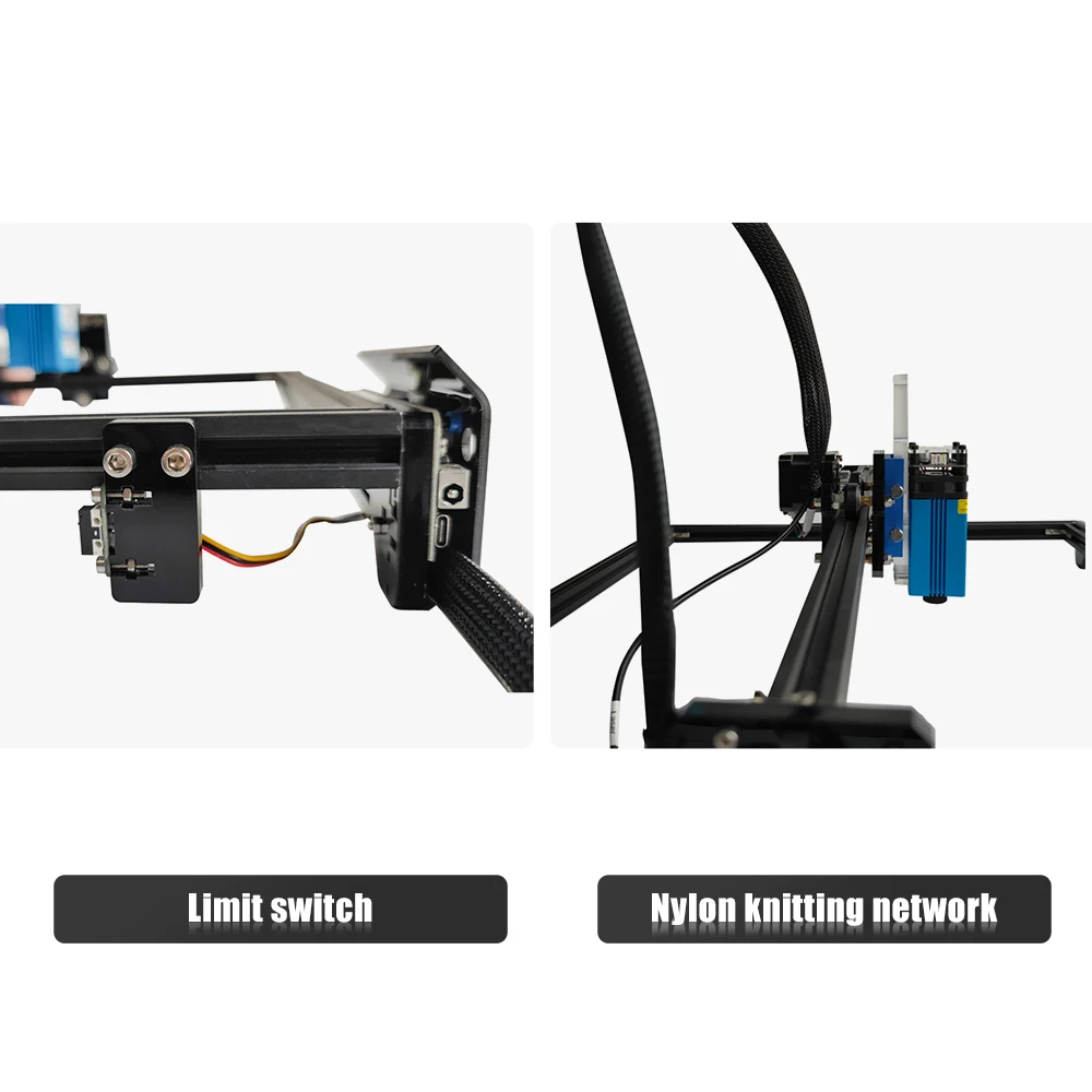 Примечание:● Пожалуйста, носите очки при работе с лазерным гравером. Надевайте защитные очки, чтобы избежать слепоты.● Пожалуйста, не прикасайтесь к лазерному излучателю рукой, иначе он может сжечь вашу руку.● Детям до 14 лет не разрешается использовать этот продукт, и детям старше 14 лет требуется наблюдение за взрослыми.● Гравировальный светильник не может быть непосредственно применен к любому зеркальному отражающему объекту, что может привести к травме оператора или сжечь лазер.