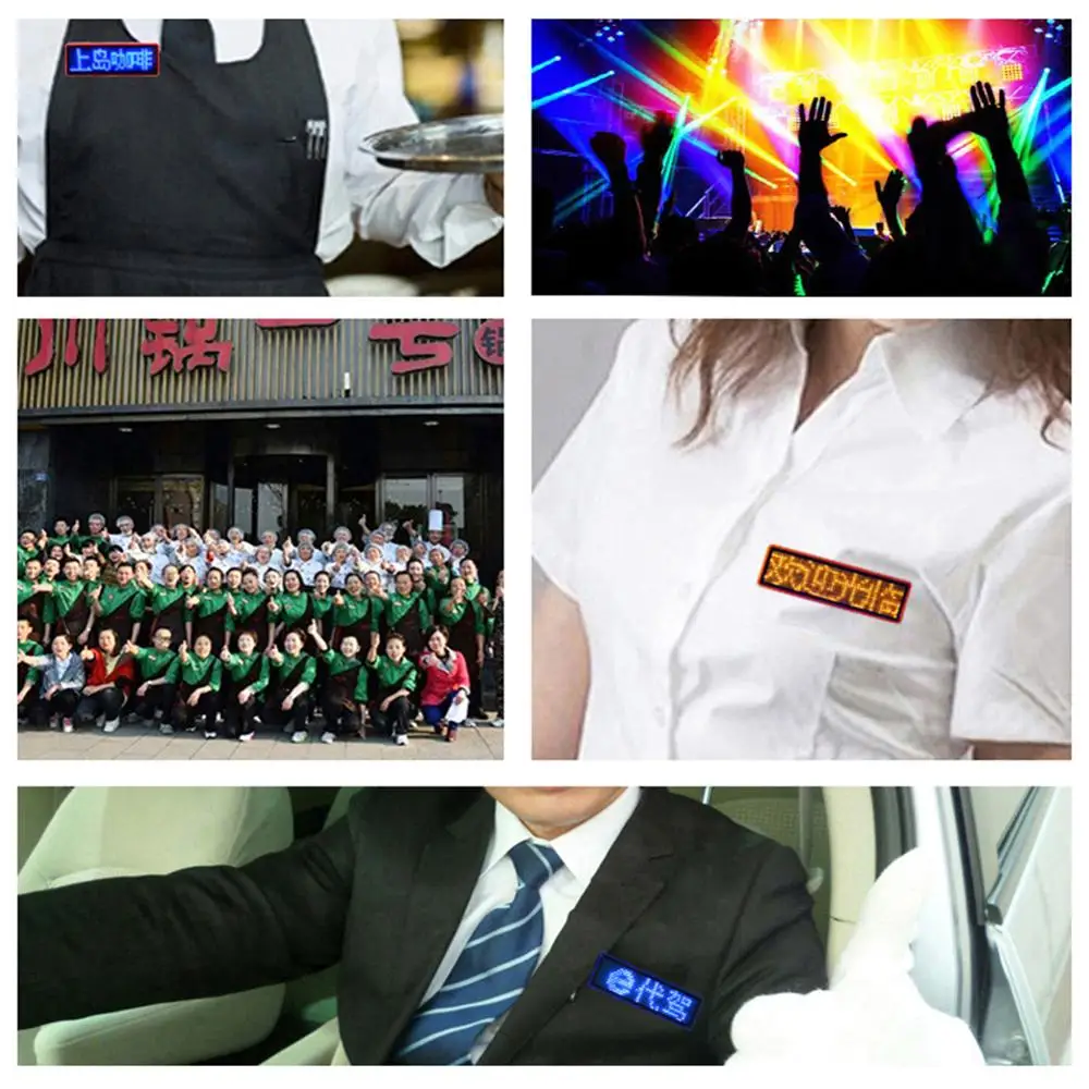 Миниатюрный светодиодный цифровой дисплей с перезаряжаемым Bluetooth управлением через приложение программируемый значок с именем прочная прокрутка ярлык для сообщений для фестивалей