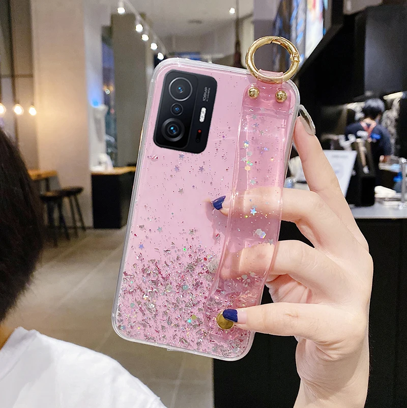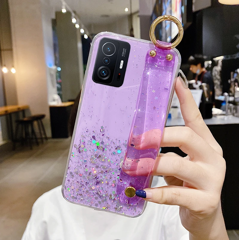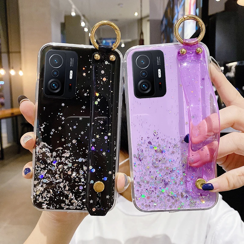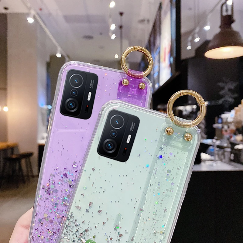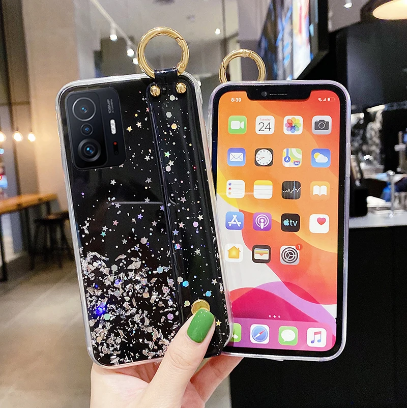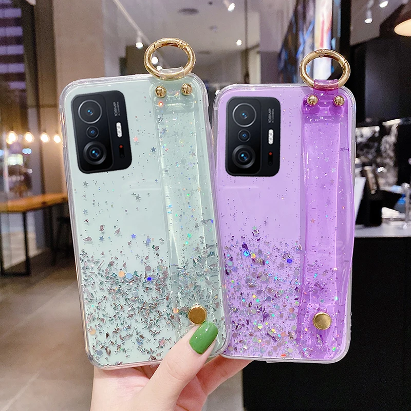 Чехол с ремешком на запястье для Redmi Note 11 10S 10 Pro Max 9 S, чехол для Xiaomi Mi 12 11T 10T Lite poco X3 Pro NFC F3, блестящий чехол для телефона