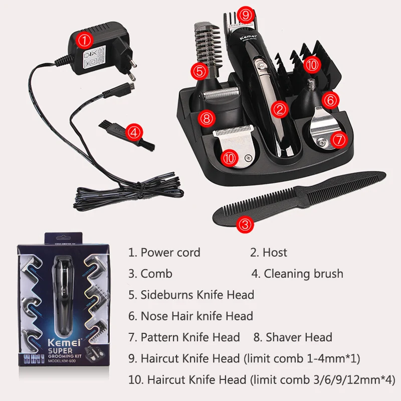 Профессиональный триммер для волос Kemei, бритва 6 в 1, полный набо...