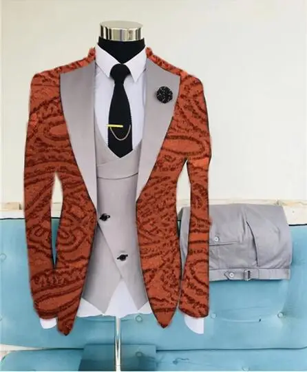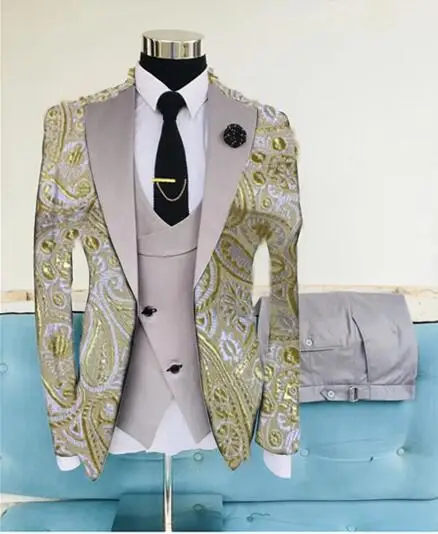 Профессиональные высококачественные жаккардовые синие с серым свадебные костюмы, мужские деловые облегающие костюмы для жениха, комплект из 3 предметов, модные классические деловые костюмы