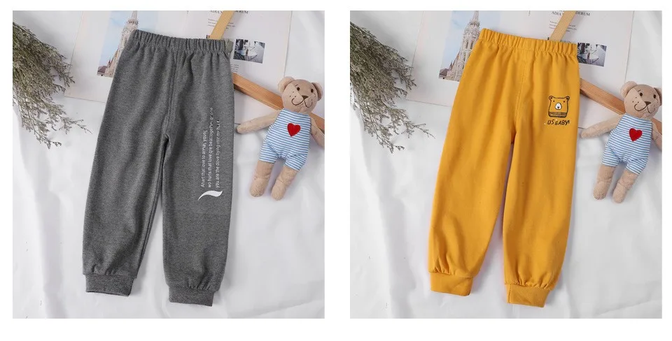 Весенне-осенние детские спортивные брюки, однотонные Мультяшные брюки для маленьких мальчиков, модные повседневные свободные детские шаровары, брюки для девочек