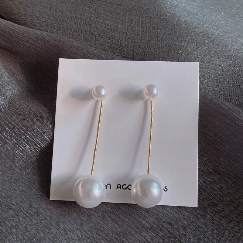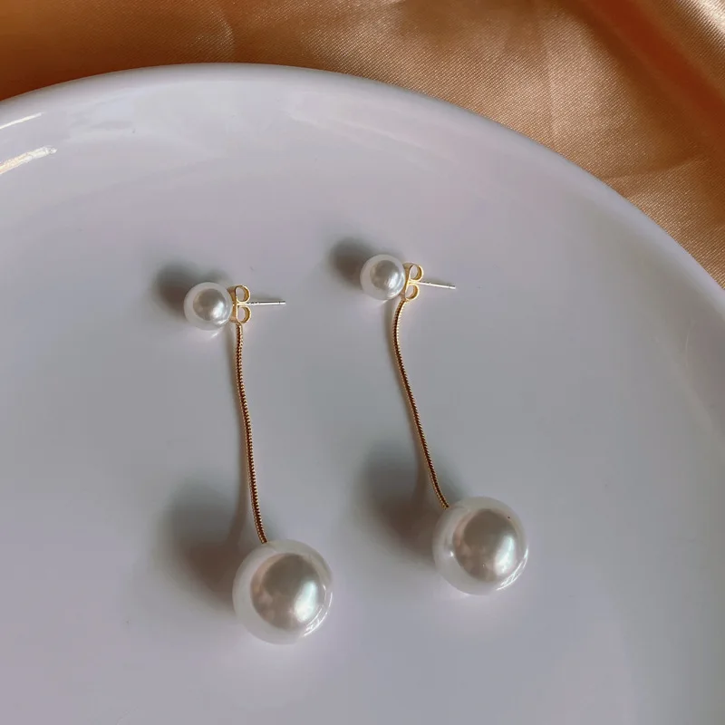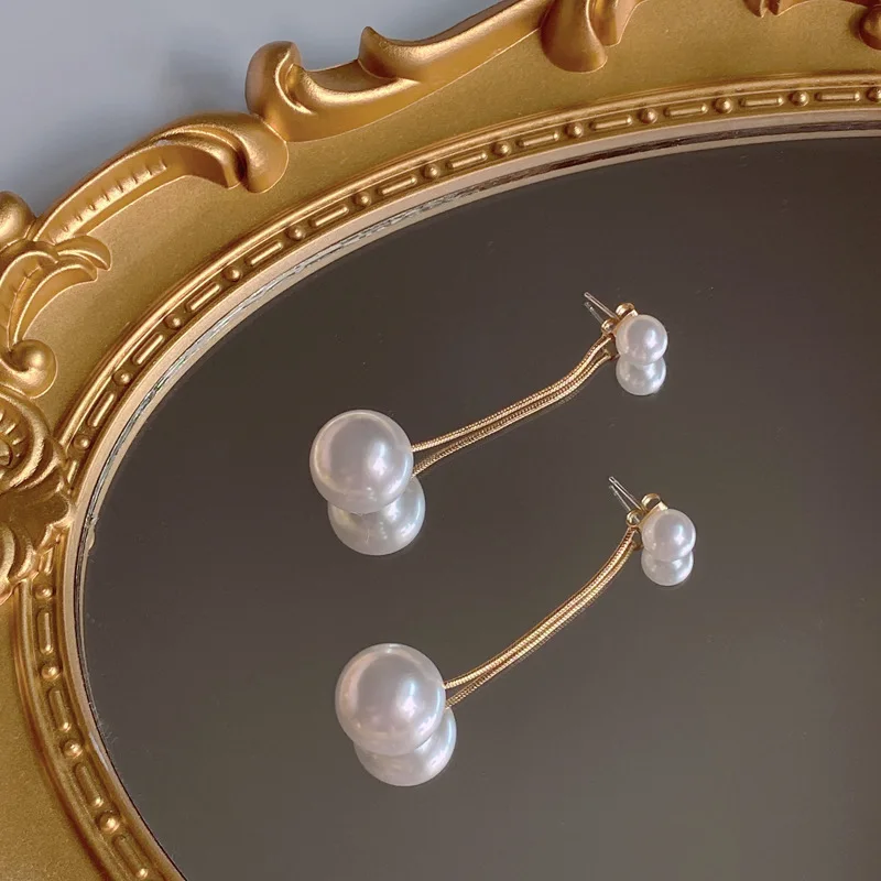 Милые модные длинные висячие серьги с двумя шариками и жемчугом для женщин, милые висячие серьги с жемчугом на спине, корейские украшения