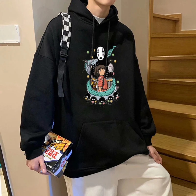 Коллекция 2021 года, японское аниме, смешная толстовка с рисунком из мультфильма Унесенные призраками для студийной фотосъемки, худи в стиле Тоторо, повседневные свитшоты Миядзаки Хаяо, Женский пуловер унисекс