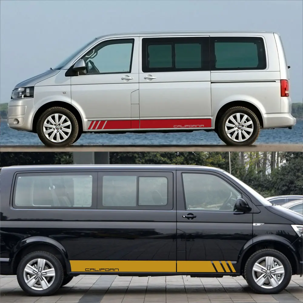 4 шт., автомобильные наклейки на дверь и боковые полосы для Volkswagen VW Multivan Transporter Caravelle T4 T5 T6, автомобильные аксессуары, виниловая пленка, наклейки