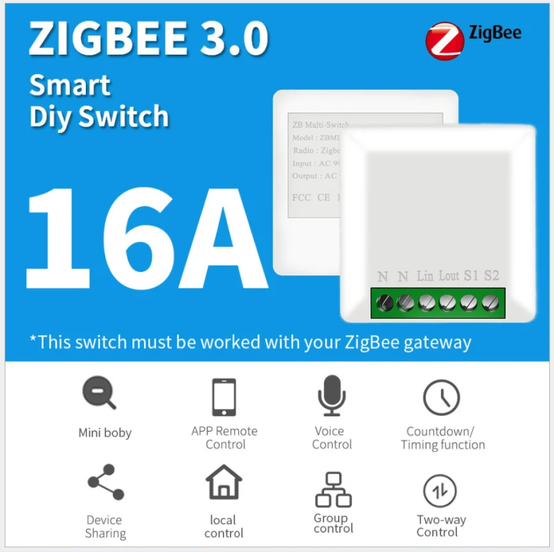 16A ZigBee 3,0 мини-смарт-переключатель, мини-корпус может быть помещен в коробку переключателя, поддержка 1-way, также поддержка 2-way, в то же время, он может быть непосредственно использован в качестве переключателя без выключателя, подключен к любому домашнему устройству, с помощью шлюза ZigBee (Ewelink/tuya /alexa/SmartThings/для Phi * ps h * e Hub и т. д.), подключение к сети, И затем вы можете использовать мобильный телефон APP для управления включением и выключением устройства, голосовым управлением (Alexa, Google home), синхронизацией, групповым управлением, смарт-сценами и другими функциями.