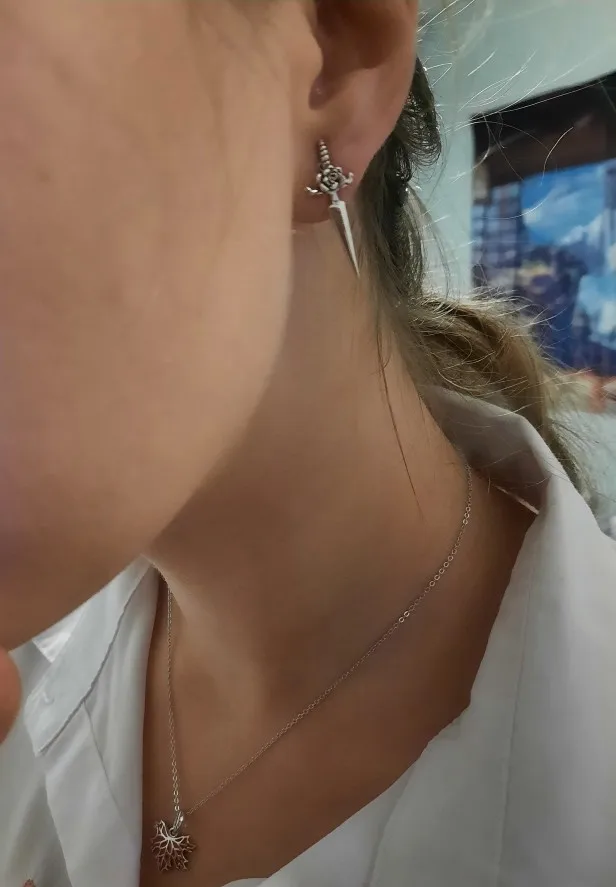 ❤[Описание] окисленный серебряный металлический кинжалом с трехмерной розой является изысканным и винтажным, показывая нотку нежности в своей твердости. Вид спереди-сзади придает уникальность стилю ношения, добавляя образу моды в наряд.❤[Спецификация] Размер: 2,7*1,1 см.❤[Материал] Стерлинговое Серебро 925 пробы и оксидированное серебро, эти серьги не содержит никель, не содержит свинец, не содержит кадмия, гипоаллергенны. Гарантия качества, приятный для кожи, удобный и удобный в носке, не вредный для вашего здоровья.❤[Для подарка] 1 пара сережек и 1 шт. Изысканная Подарочная коробка, которая является идеальным подарком для мамы, дочки, правки, тети, сестер, друзей.