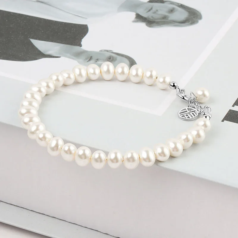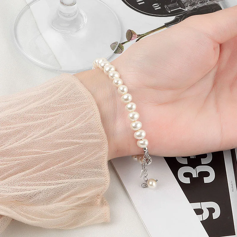 Браслет с натуральным жемчугом и пресноводным жемчугом, 4-7 мм