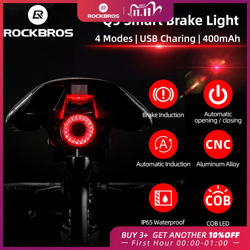 Велосипедный фонарь ROCKBROS Q5, стоп-сигнал с автоматическим датчиком, водонепроницаемый светодиодный светильник задний фонасветильник для велосипеда