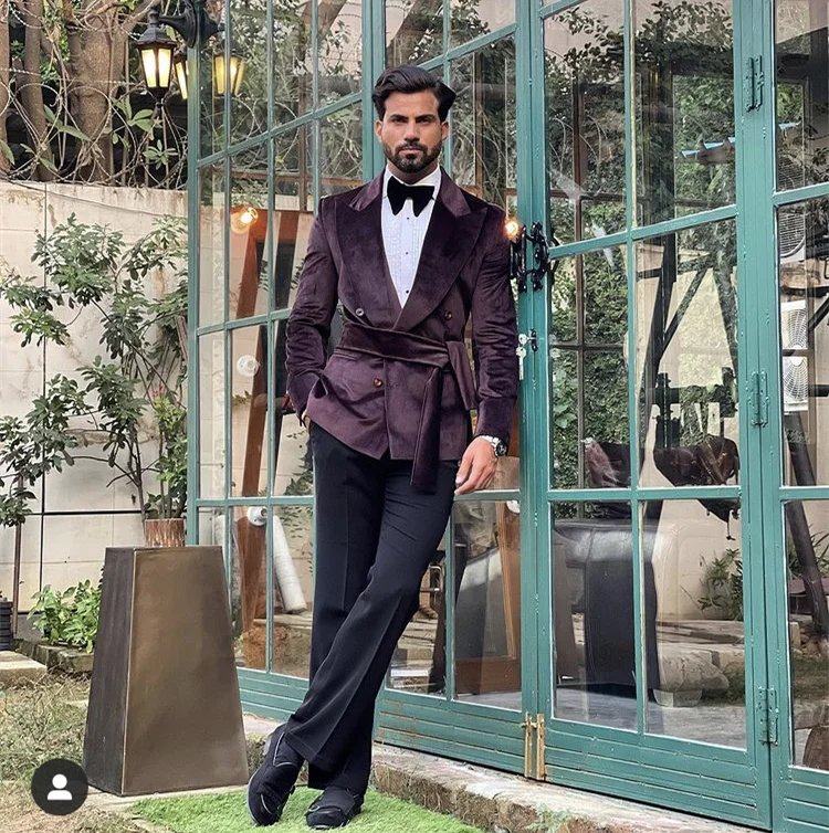 Новинка 2022, мужские Бархатные костюмы с поясом, индивидуальный пошив, свадебный смокинг, Terno Masculino, для жениха на выпускной, 2 шт., приталенный Блейзер