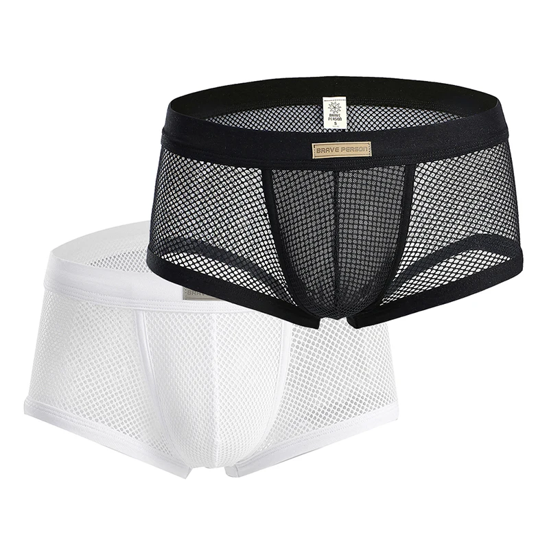 Трусы-боксеры мужские сетчатые, Брендовое пикантное нижнее белье, в...