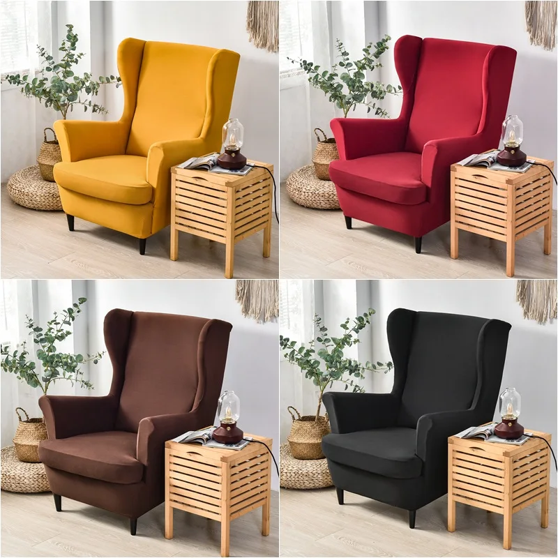 Однотонный чехол на кресло с крыльями, эластичные чехлы на кресла из спандекса, европейские съемные чехлы для дивана, чехлы для подушек на сиденья