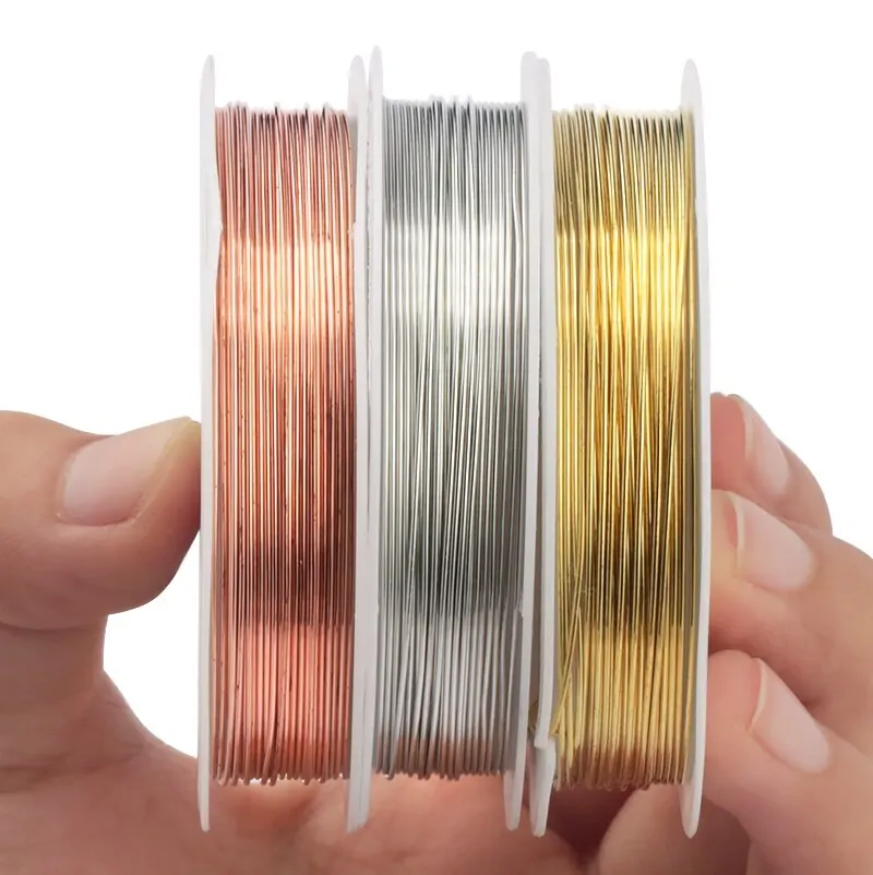 Медная проволока для браслета ожерелья DIY СеребрянаяЗолотаяРозовая Золотая цветная проволока для бисероплетения Ювелирная нить для рукоделия