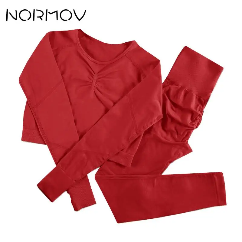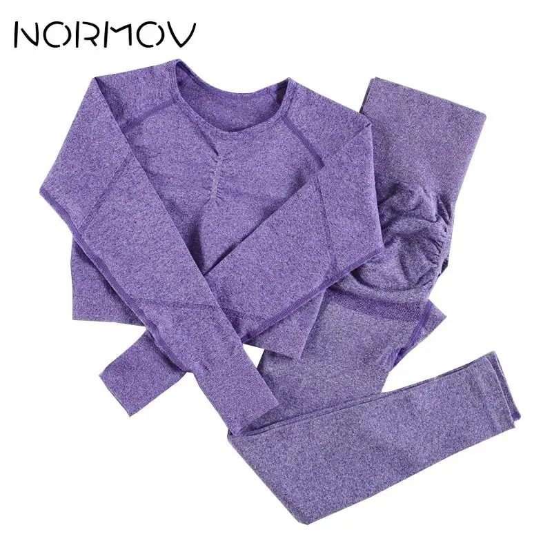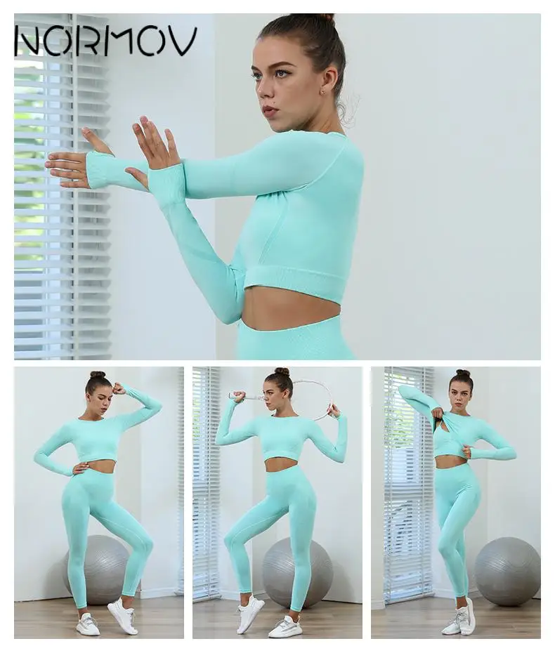 Комплект Спортивный NORMOV женский бесшовный, комплект для йоги из 2 предметов, рубашка с длинным рукавомбюстгальтер + леггинсы с завышенной талией и шорты