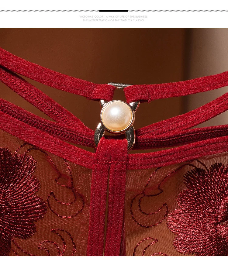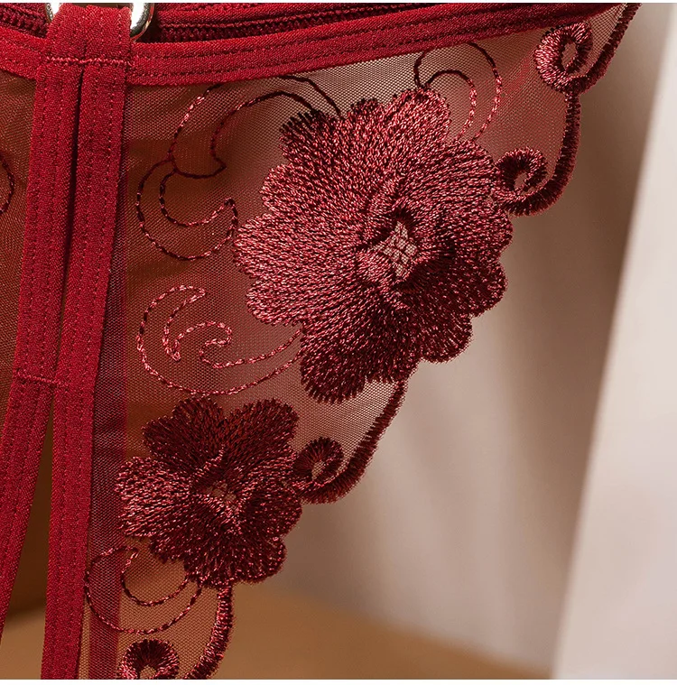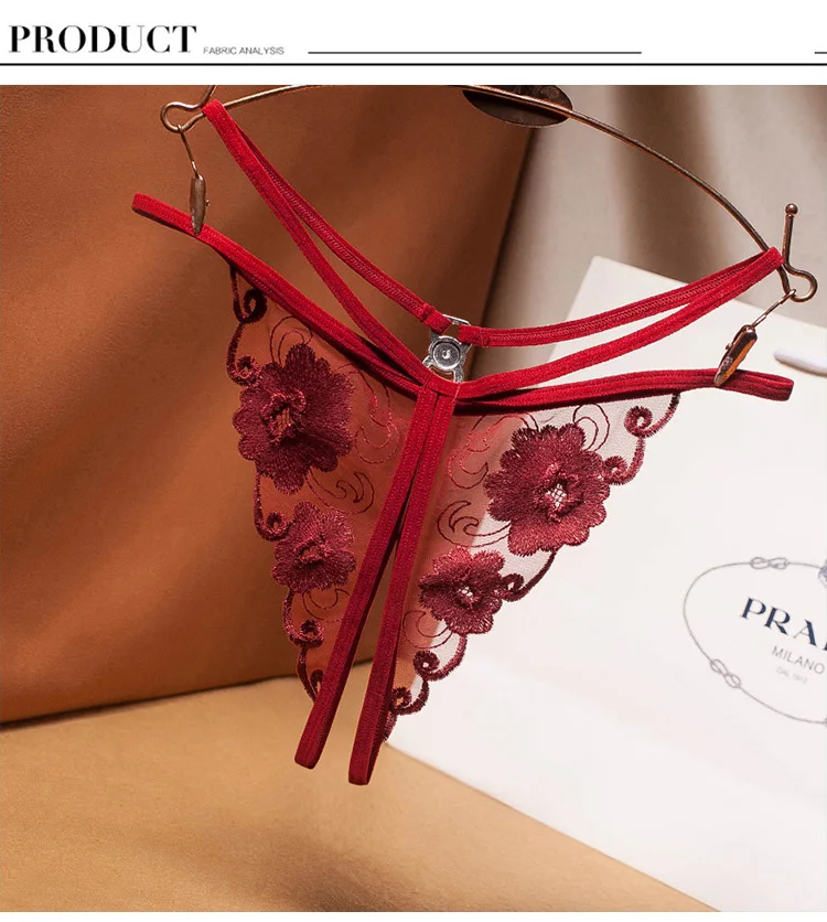 Женское Эротическое нижнее белье, сексуальное кружевное нижнее белье для женщин, экзотические ажурные стринги, трусики с открытой промежностью, трусики с жемчужной вышивкой, G-стринги