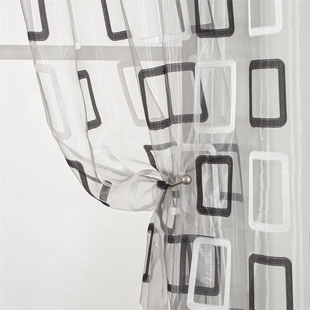 Занавеска из тонкой ткани, белая, с геометрическим рисунком, для го...