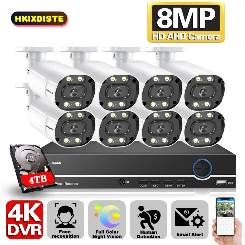 8MP ультра FHD система видеонаблюдения 8CH H.265 + DVR наружная 4K Камера Безопасности s система полноцветная Ночная CCTV Камера Наборы