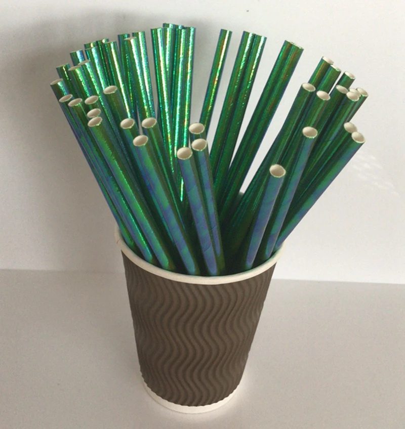 Соломинки бумажные одноразовые переливающиеся, 25 шт.